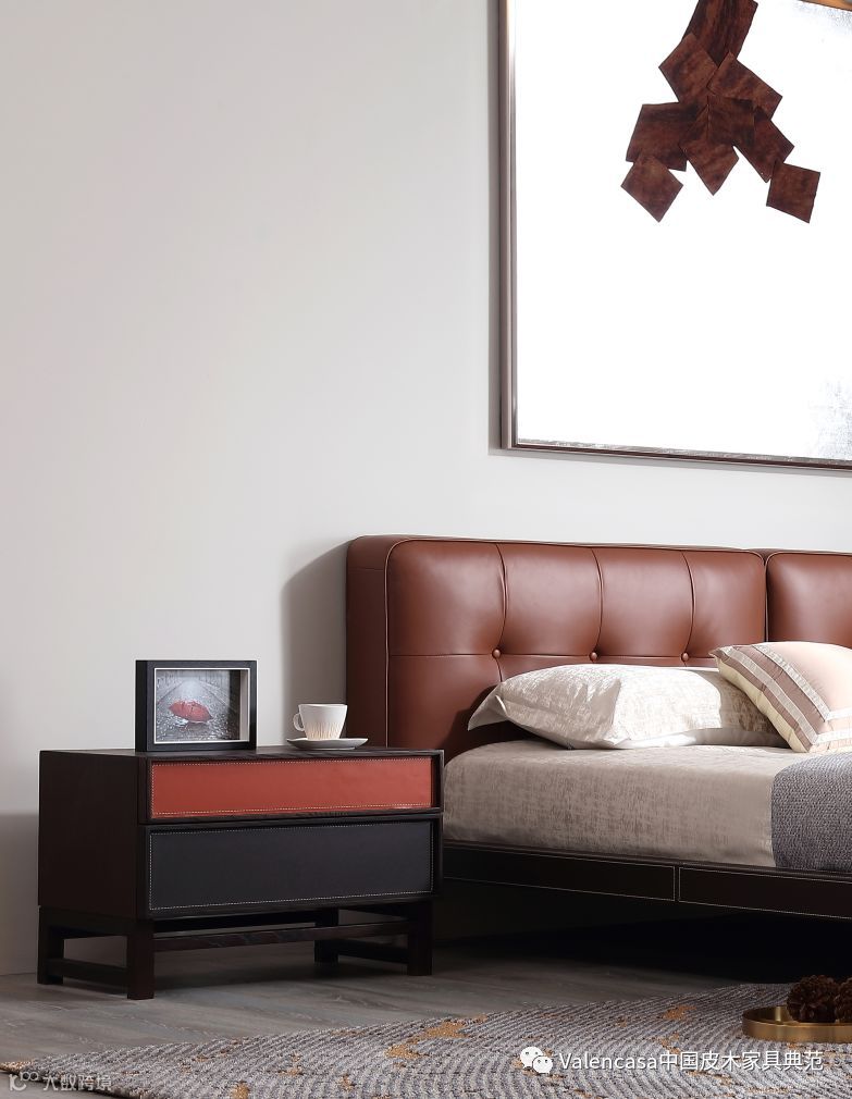 从设计到色彩,稳重大气之感油然而生。皮质与木的结合是华林凯迪一直以来的特色,砖红的色调流露着一股光阴的沉淀,似晚霞落幕归家,似红叶翩翩暖意来,给人以回归与温暖。