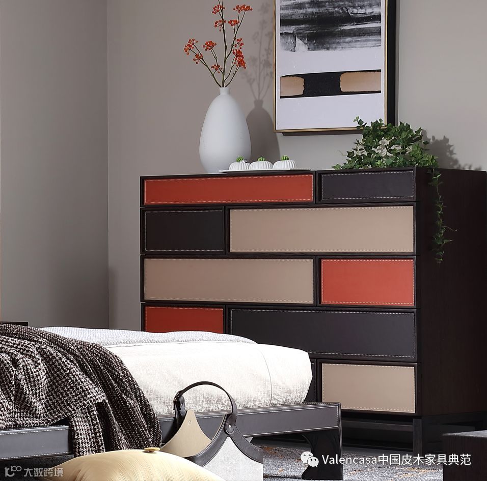 华林凯迪“魔方”收纳柜打破以往的设计思路,整体分割为五层,每一层又分为两列,通过不同的皮艺色彩进行整体搭配。细看可知,每一层左右大小均有所不同,上下规格大小也有所差异,给予每个不同规格收藏物分派到不同的收纳空间,给予空间最大清爽。