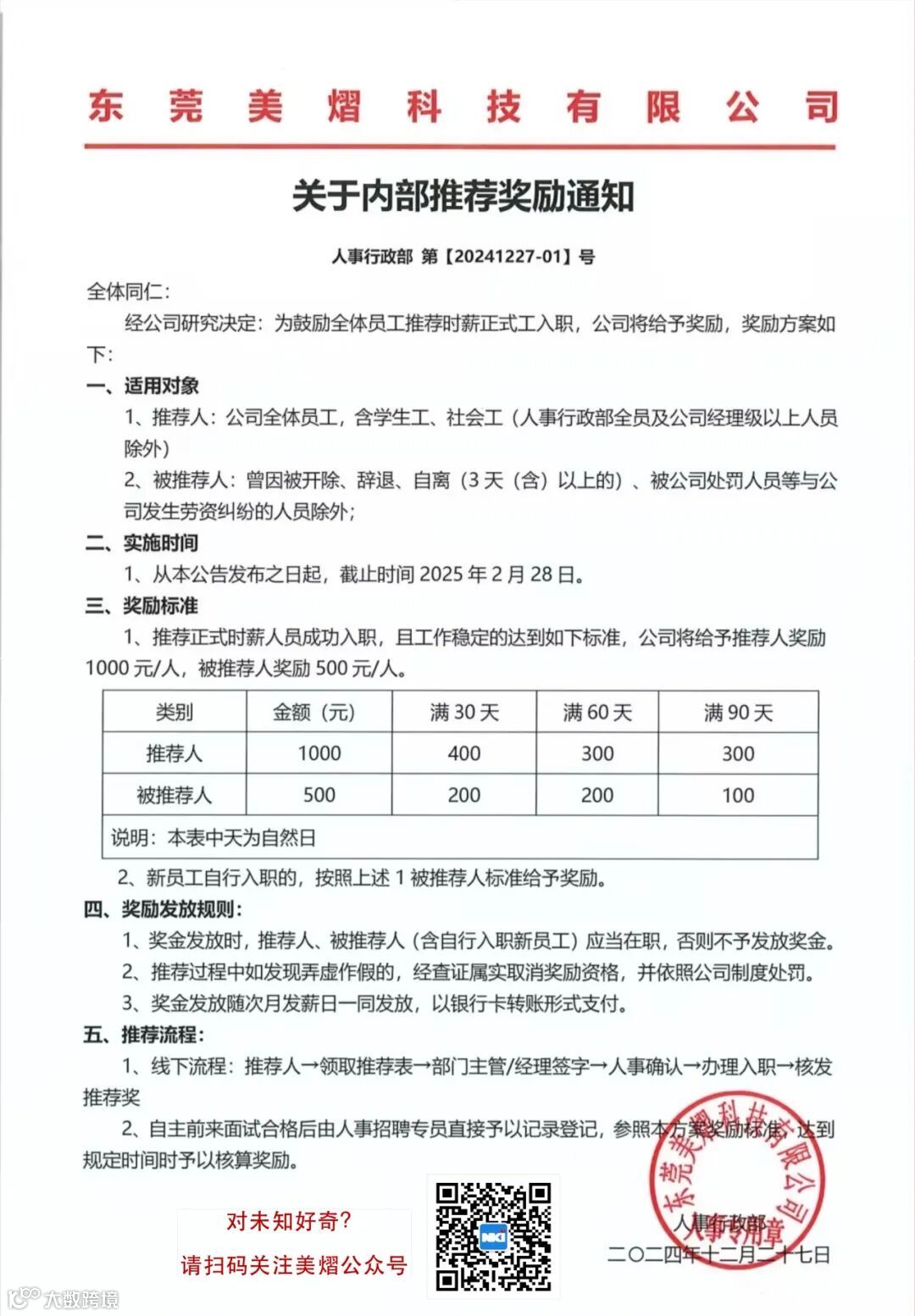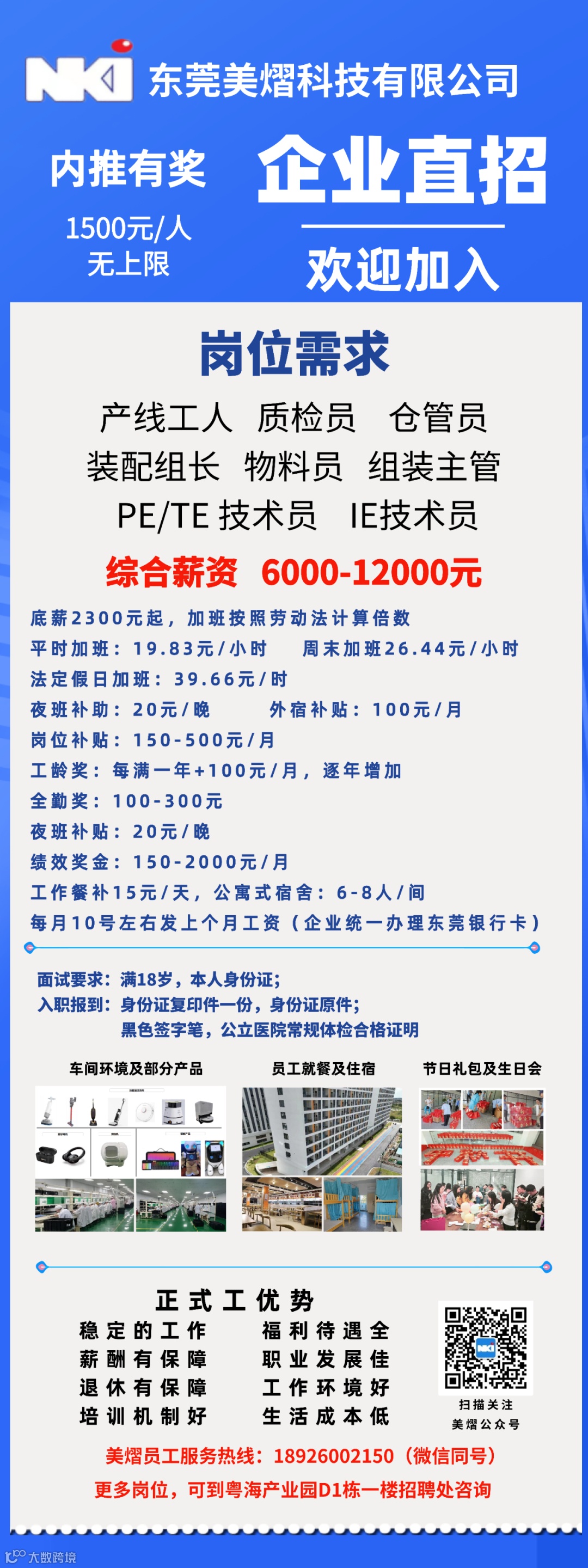 2、公司地址:东莞市谢岗镇粤海工业园D1栋招聘处;