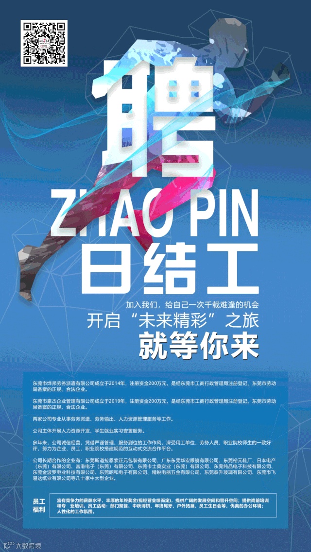 东莞市豪杰企业管理有限公司成立于2019年,注册资金200万元,是经东莞市工商行政管理局注册登记、东莞市劳动局备案的正规、合法企业。