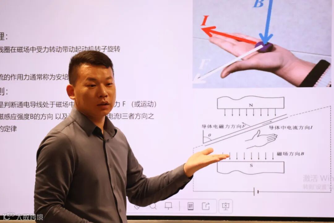在介绍电动牙刷的工作原理过程中,涉及到了学生们还没有涉及到的物理学科知识。陈经理通过PPT中对“左手定则”的介绍、以及早已准备好的马达小工具,让学生通过现场的小实验,对此类未接触过的知识有了初步的了解。