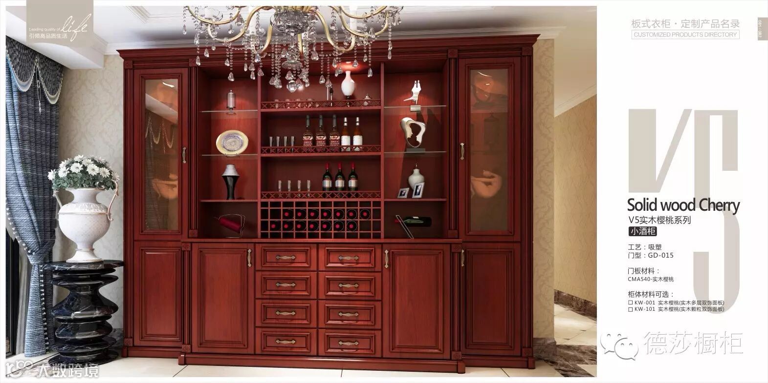 实木樱桃系列:流畅的线条,精致紧凑的结构,使空间立刻拥有了别样的风情,如优雅的艺术精品,时尚外观与内在气韵浑然一体,缔造出不凡品味,精美的集合形装饰柱,俯仰之间尽显新贵之气。