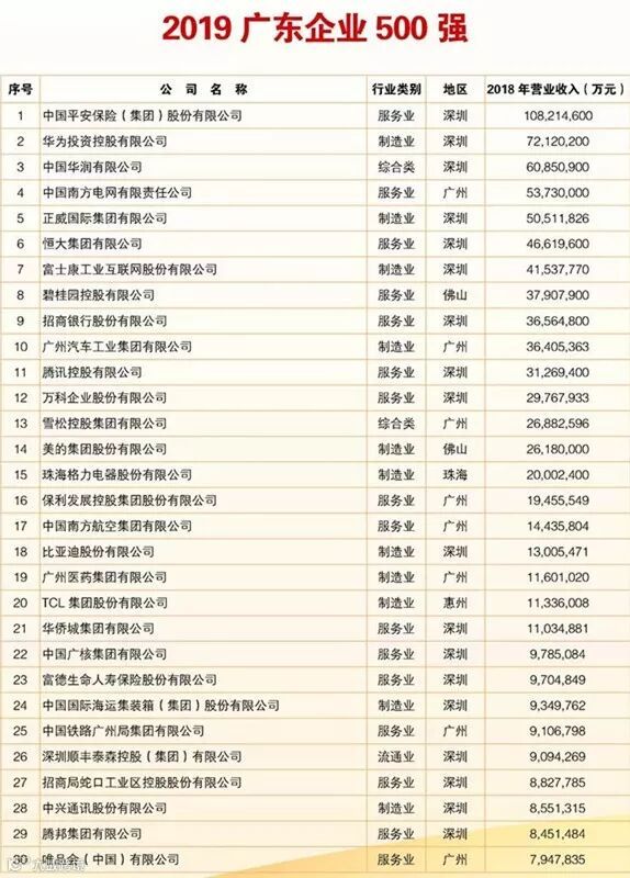 8月29日上午,2019广东企业500强发布大会在广州白云国际会议中心举行。广东省企业联合会、广东省企业家协会在大会上发布了2019广东企业500强榜单,同时发布了广东民营企业、制造业、服务业、流通业和创新企业的100强榜单。