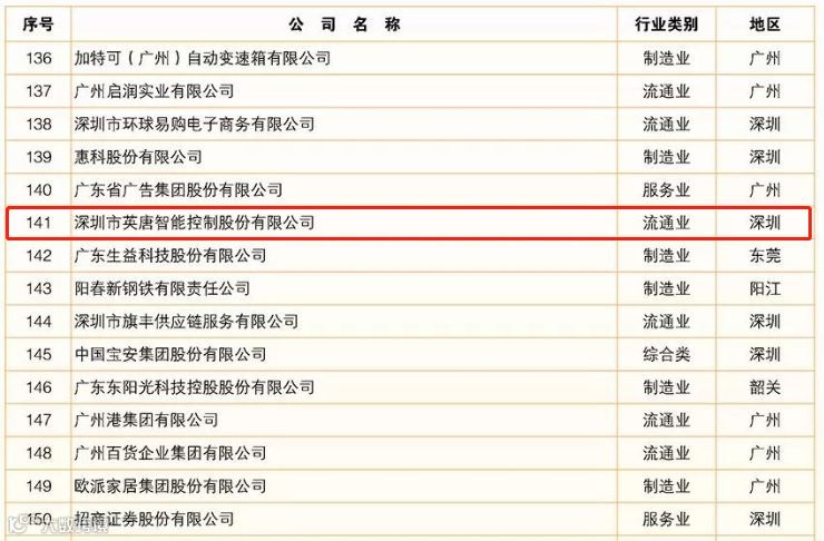 热烈祝贺深圳市英唐智能控制股份有限公司荣登2019广东企业500强第141位(2018年第179位,2017年第212位)。