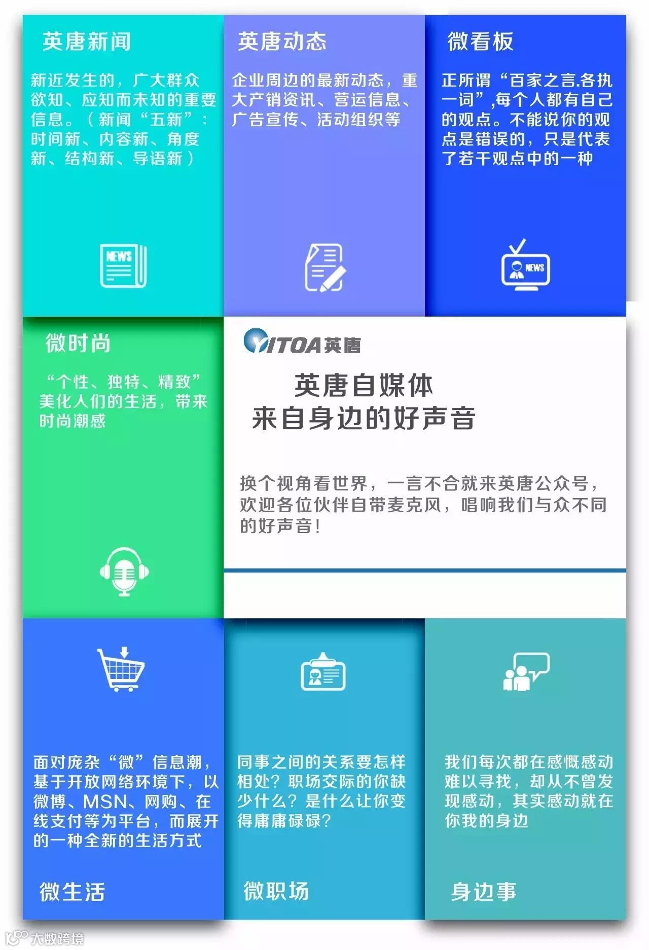 我们将持续提供有意思的新闻故事、新鲜而有趣的图文资讯,实力打造英唐新闻、英唐动态、微看板、微时尚、微生活、微职场、身边事等板块。欢迎英唐人和关注英唐的各位伙伴热情投稿,互动交流,碰撞出美丽的思想之花。
