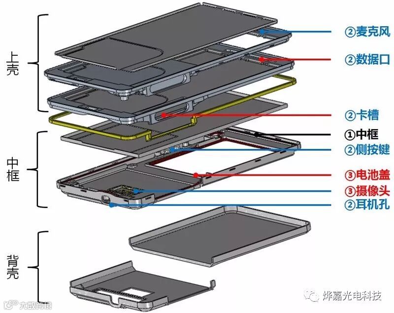 目前智能手机的防水主要划分为四大区:屏幕区,中框区,侧面功能区及背面功能区。由于屏幕的特性,目前只能用双面点胶or点胶工艺进行,在这里将不展开说明。