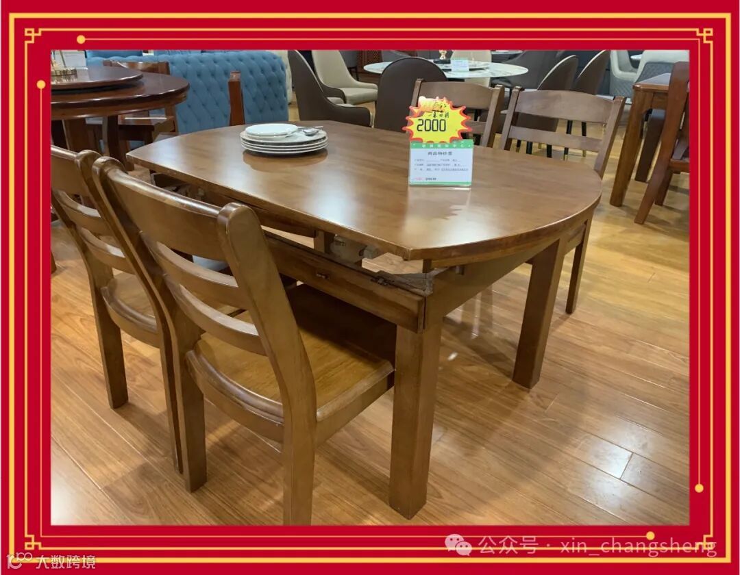 直径1.35米可伸缩橡木一桌四椅