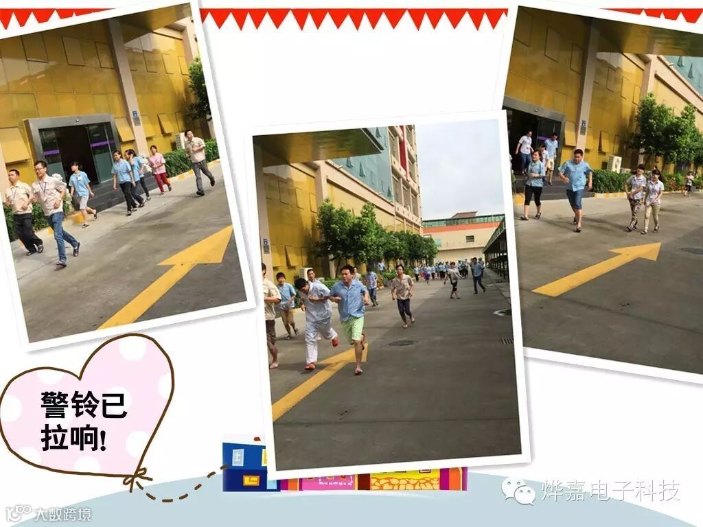 这次消防演习16:00在警报铃声突然响起时,全体员工飞快地冲出各生产车间,有秩序的往出口方向逃跑,积极地响应这次的消防演习。所有的员工迅速的集合在空地上(指定安全区域),并准确地找到自己的部门队列排好队。从集合速度和到场人员统计显示,装配部、模具部、生管部三个部门的员工反应迅速,从楼上到集合地点只用了不足3到,集合速度极快。