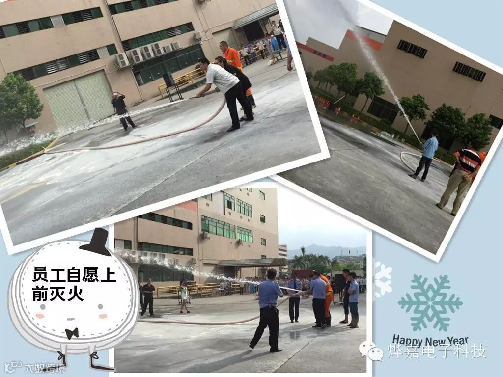 2015年6月24日下午16:00时,东莞烨嘉电子科技有限公司举行了2015年第一次消防演习。此目的是为了提高全员消防意识,增强员工在紧急情况下的应变和自我防护能力,使每个员工掌握一定的消防知识。