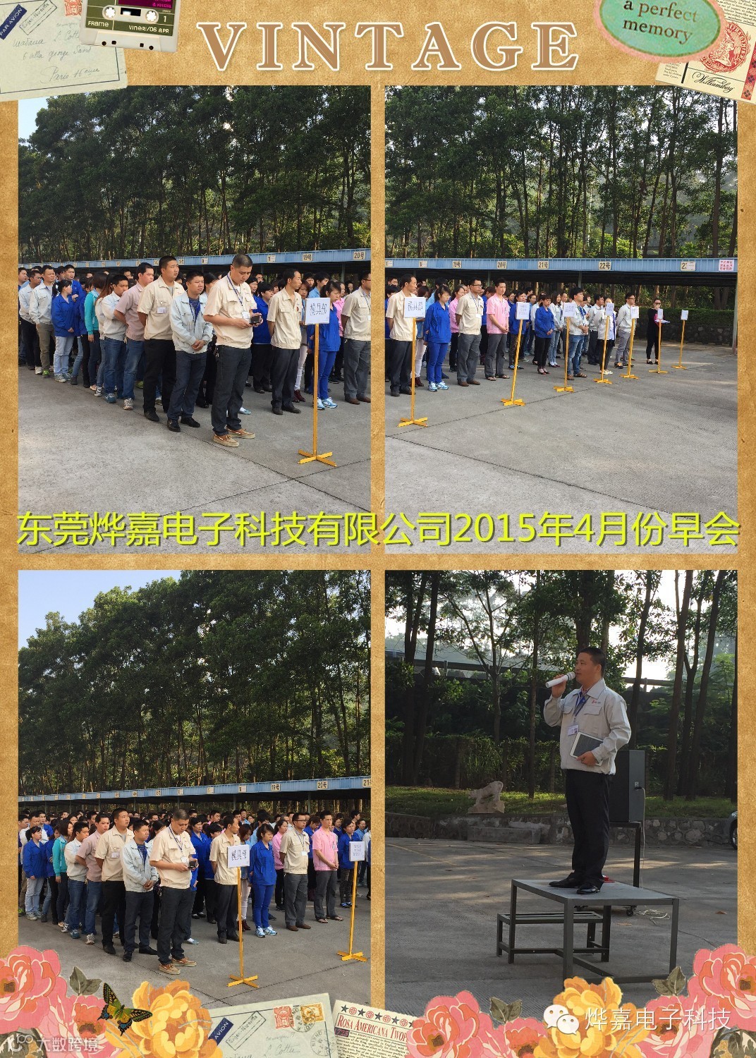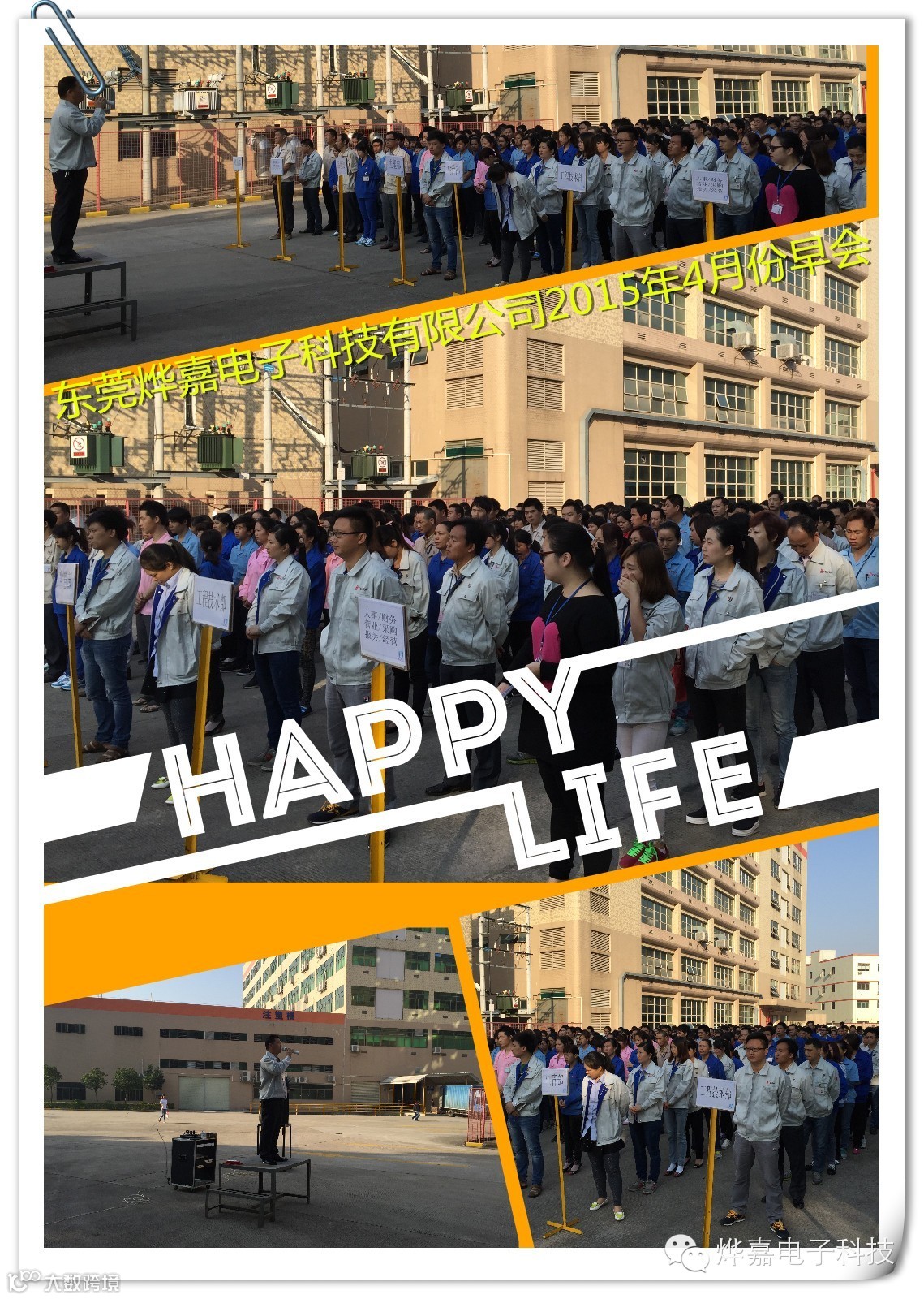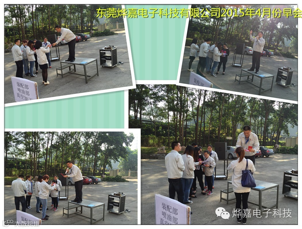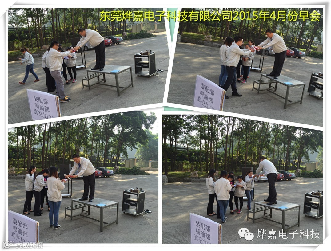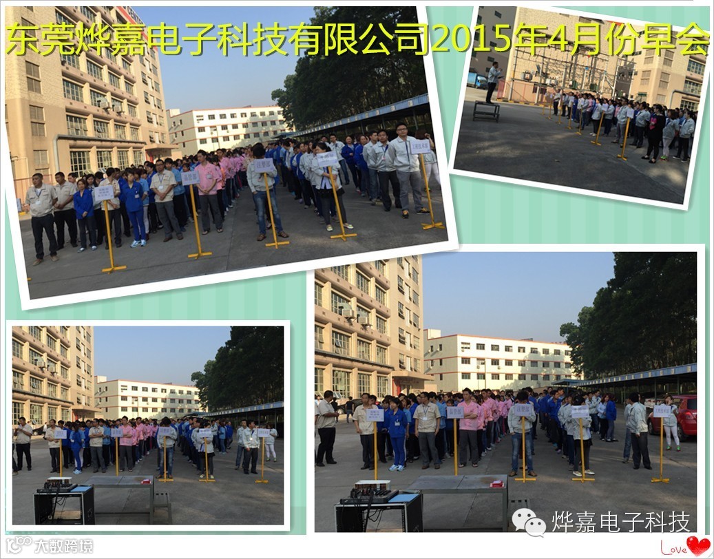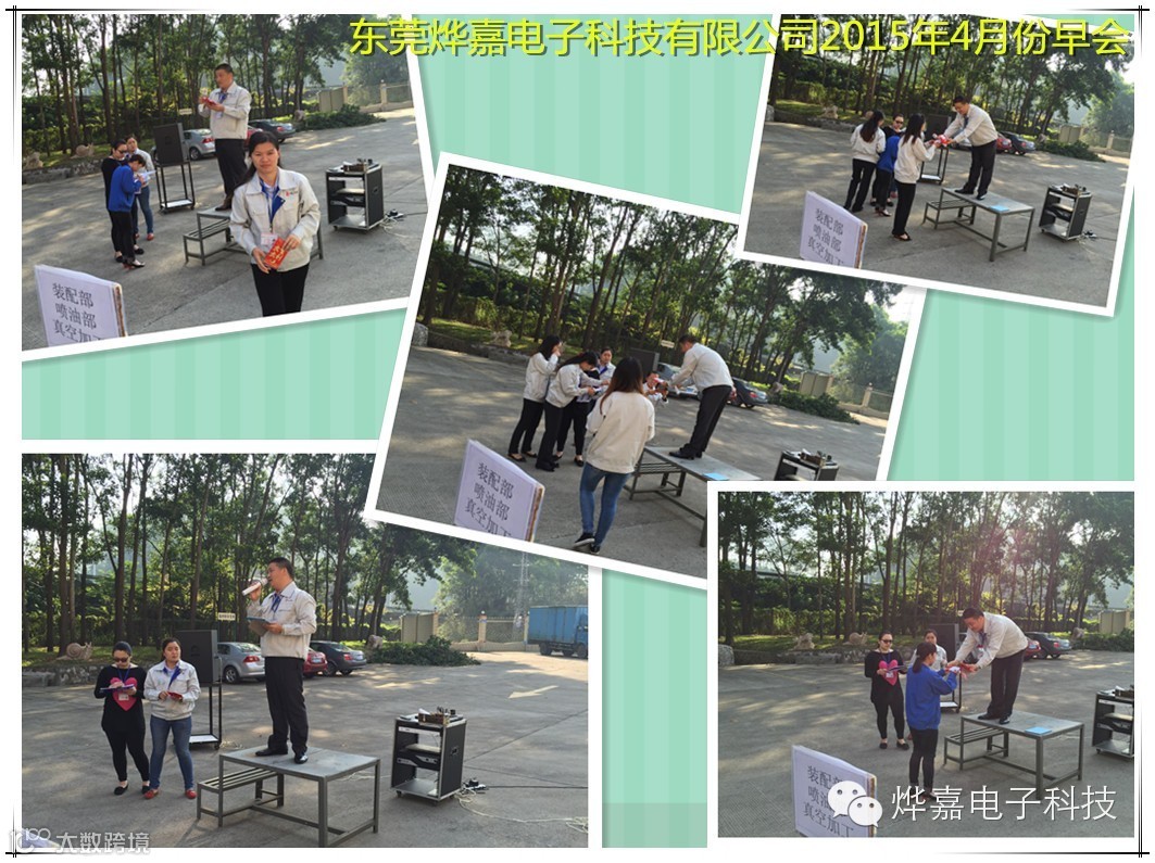 2015年4月13日全体职工如约来到研发楼停车场参加4月份公司早会,早会主要内容为: