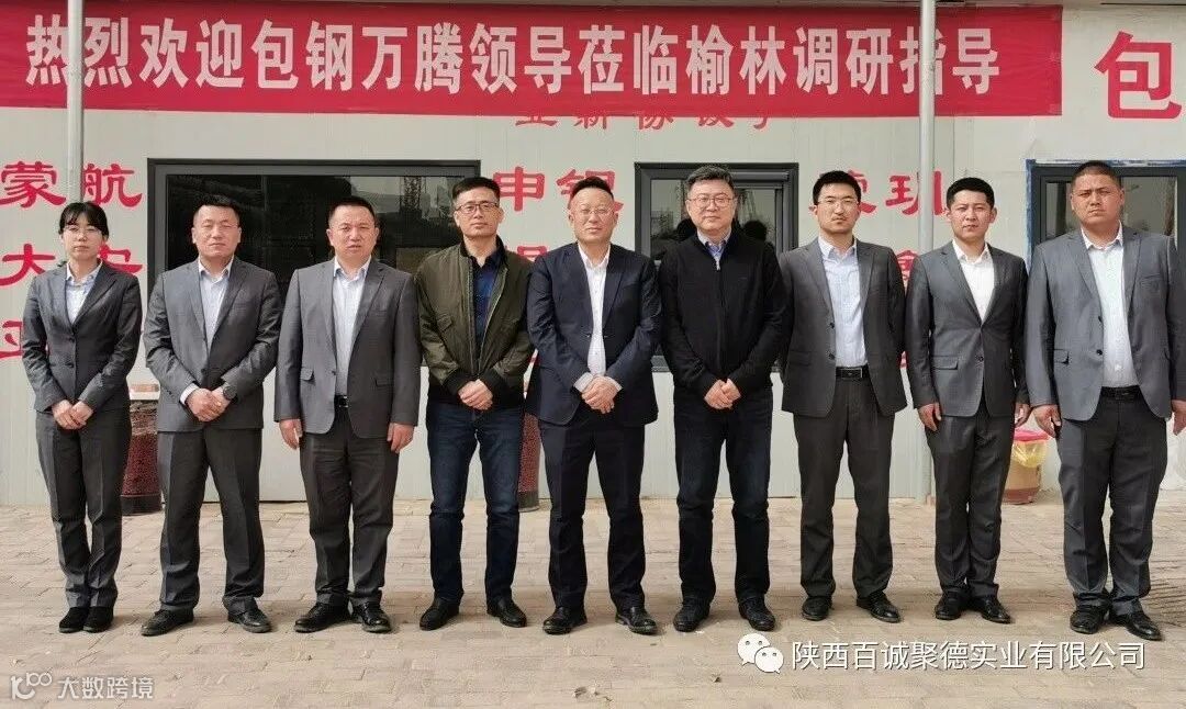 乌海万腾包钢领导与公司骨干合影留念,为企业员工亲切问候,并询问了当前销售遇到的难题与有待改进等方面。(左4杨爱国)(右4马俊骁)