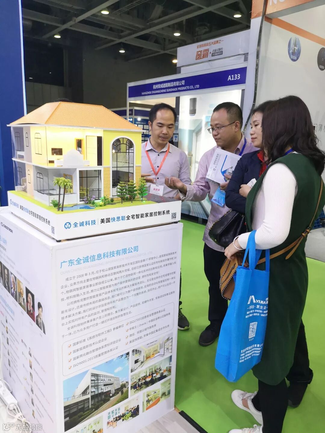 全诚智家A115展厅——作为全场最靓的展厅,在短短2天布展时间里,实现全套全屋智能产品分区域上墙展示,除了实现单个设备控制,还能多场景联动,实现语音、APP、远程、感应等多种控制方式,让客户能声临其境体验全屋智能,短时间、高效率,足以体现全诚技术人员专业、扎实的技术服务功底,为现场工作的小伙伴们点赞!