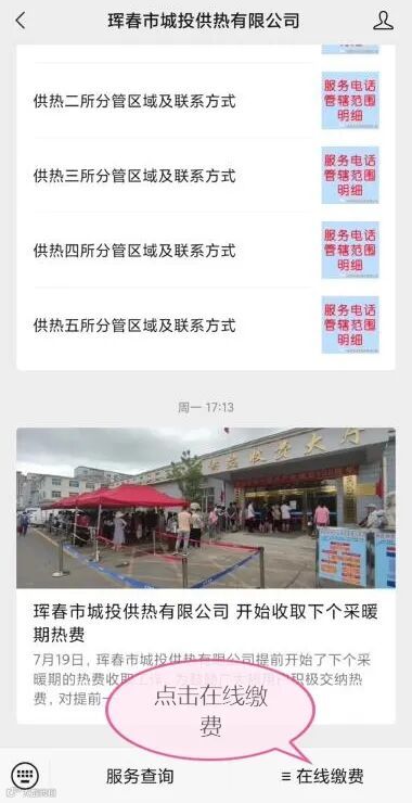 1、关注微信公众号珲春市城投供热有限公司。