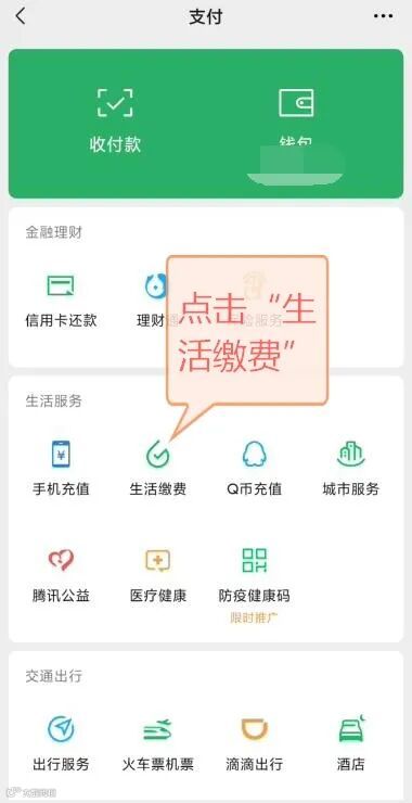 1.打开“微信支付”中的“生活缴费”。