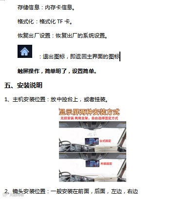语音控制:显示前路,显示后路,显示左路,显示右路,打开屏幕,关闭屏幕,显示主界面,7句声控词条。