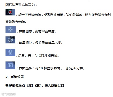 录像时,在蓝牙图标傍边有个红点闪烁,红点停止闪烁时,停止录像。