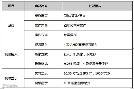 10.36寸IPS高清显示屏(1600*720)/触摸屏,触屏操作/带MP5影音U盘插口