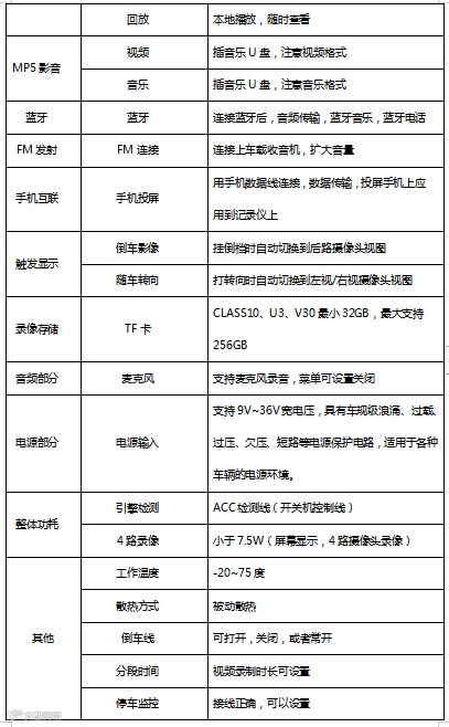 蓝牙:手机连接上记录仪蓝牙后,实现音频传输,蓝牙音乐,蓝牙电话等。