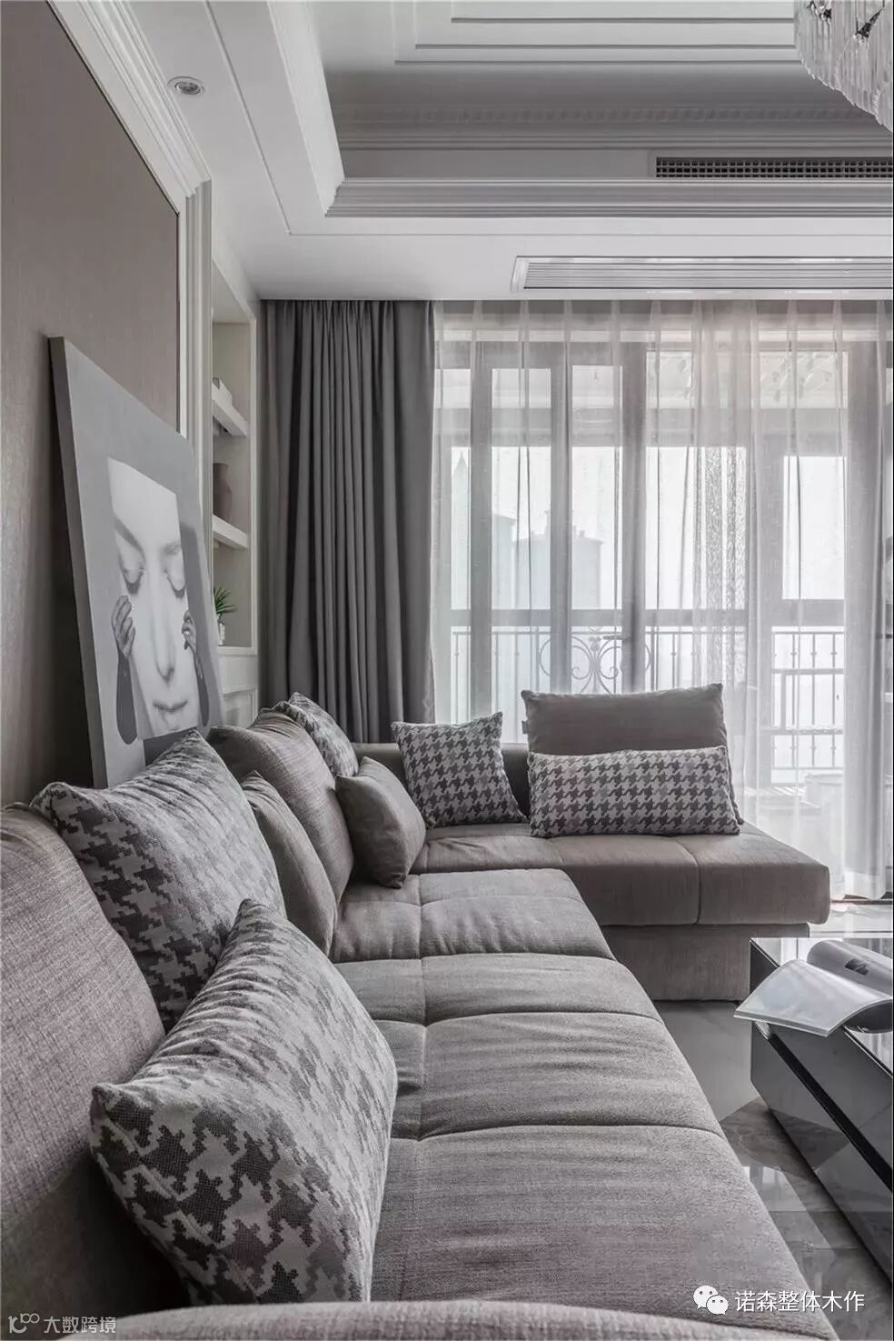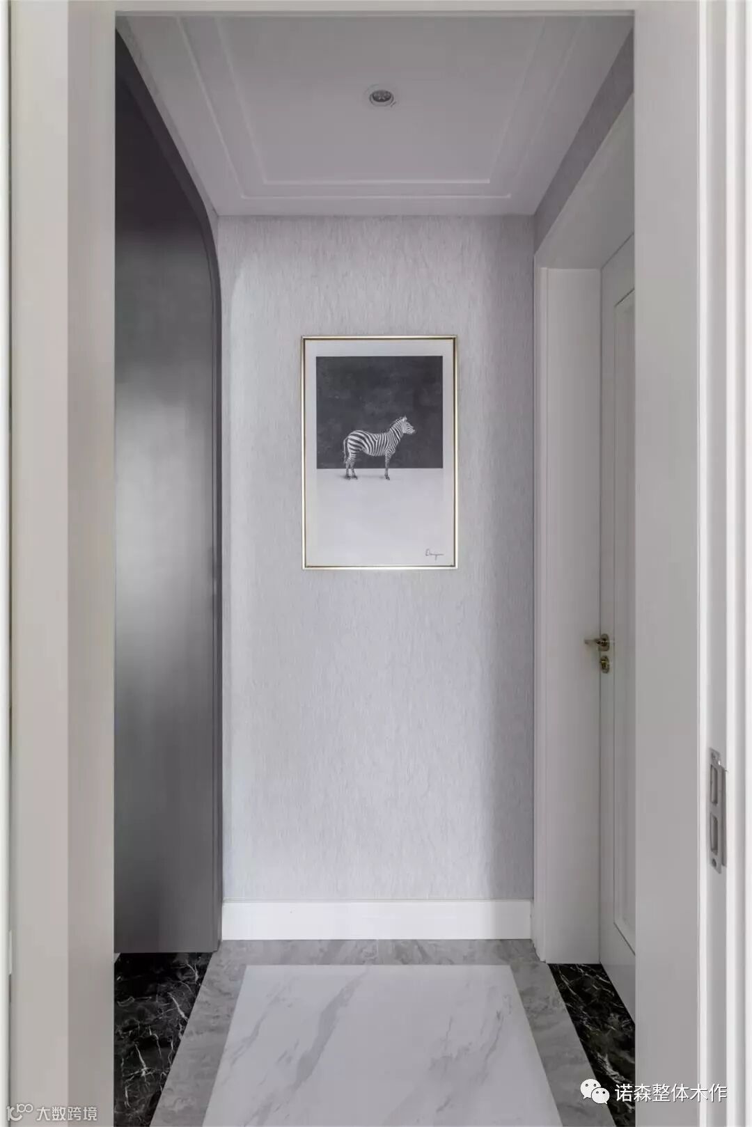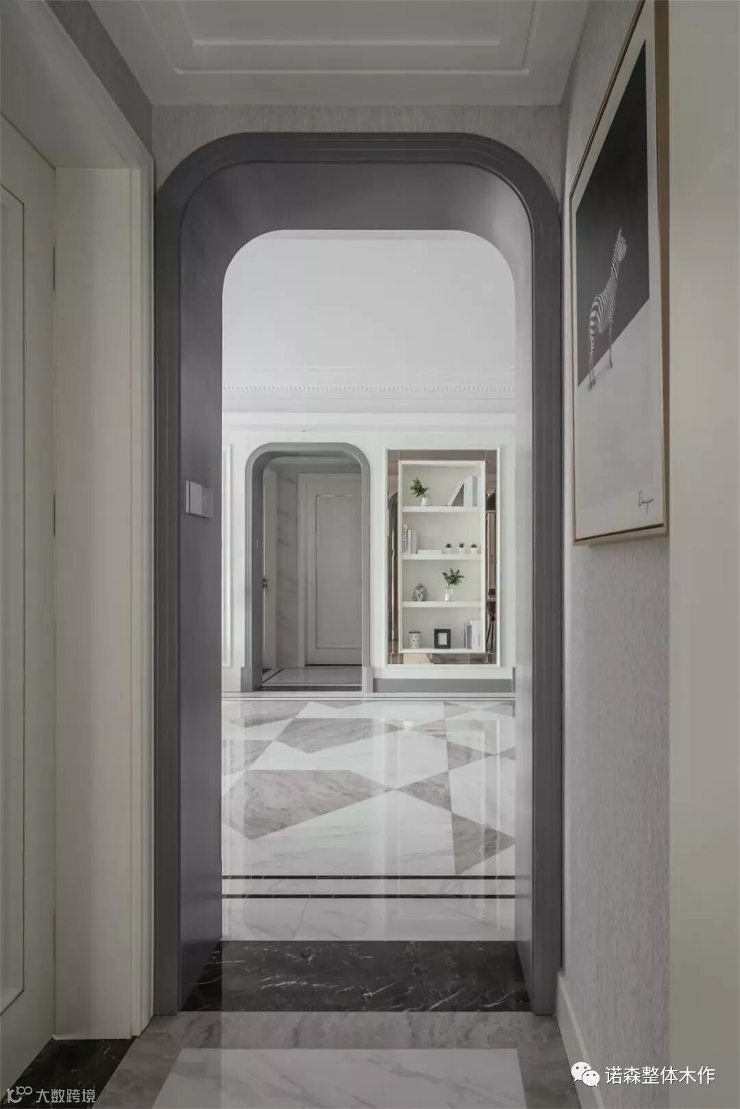 ◆ 客厅、主卧和儿童房的过道空间,我们用了拱形的灰色门套,加强层次过度。