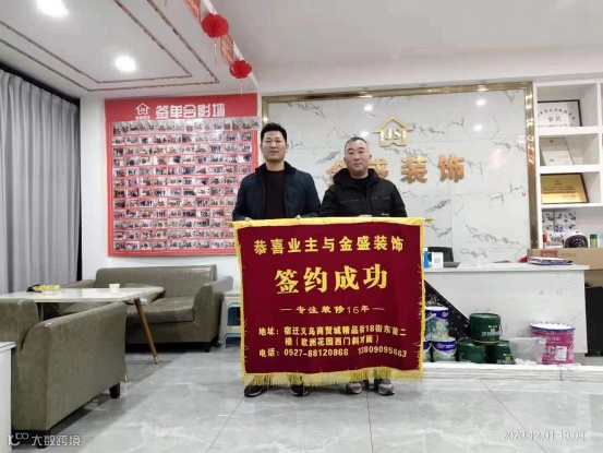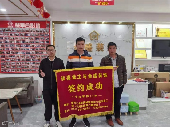 金盛装饰工厂的材料出厂后便直接到消费者手中,省去中间商层层加价,比传统装修省百分之30,真正做到产品厂家直供、设计规范、质量过硬、服务优质、价格透明。早在2012年就荣获江苏省宿迁市诚信单位、2013年被评为江苏装饰协会优秀装饰企业,实力毋庸置疑。