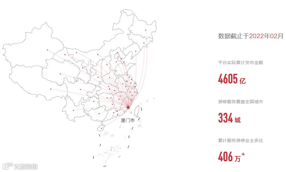 2022年是保驾护航创立的第九个年头,至今已累计业主发布装修金额达4605亿,装修服务覆盖全国334个城市,服务业主超406万(数据截止到2月)。