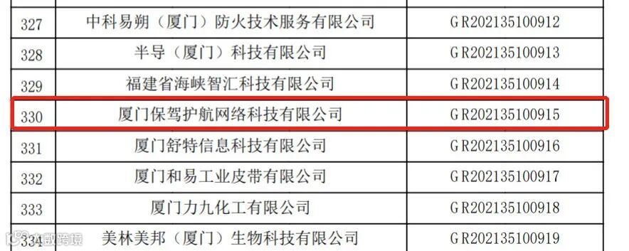日前,经国家火炬中心公示,保驾护航顺利通过2021年国家级高新技术企业认定。这是保驾护航连续两届通过国家级高新技术企业认定。