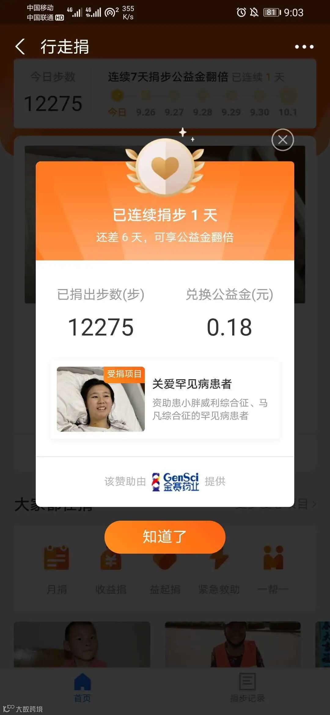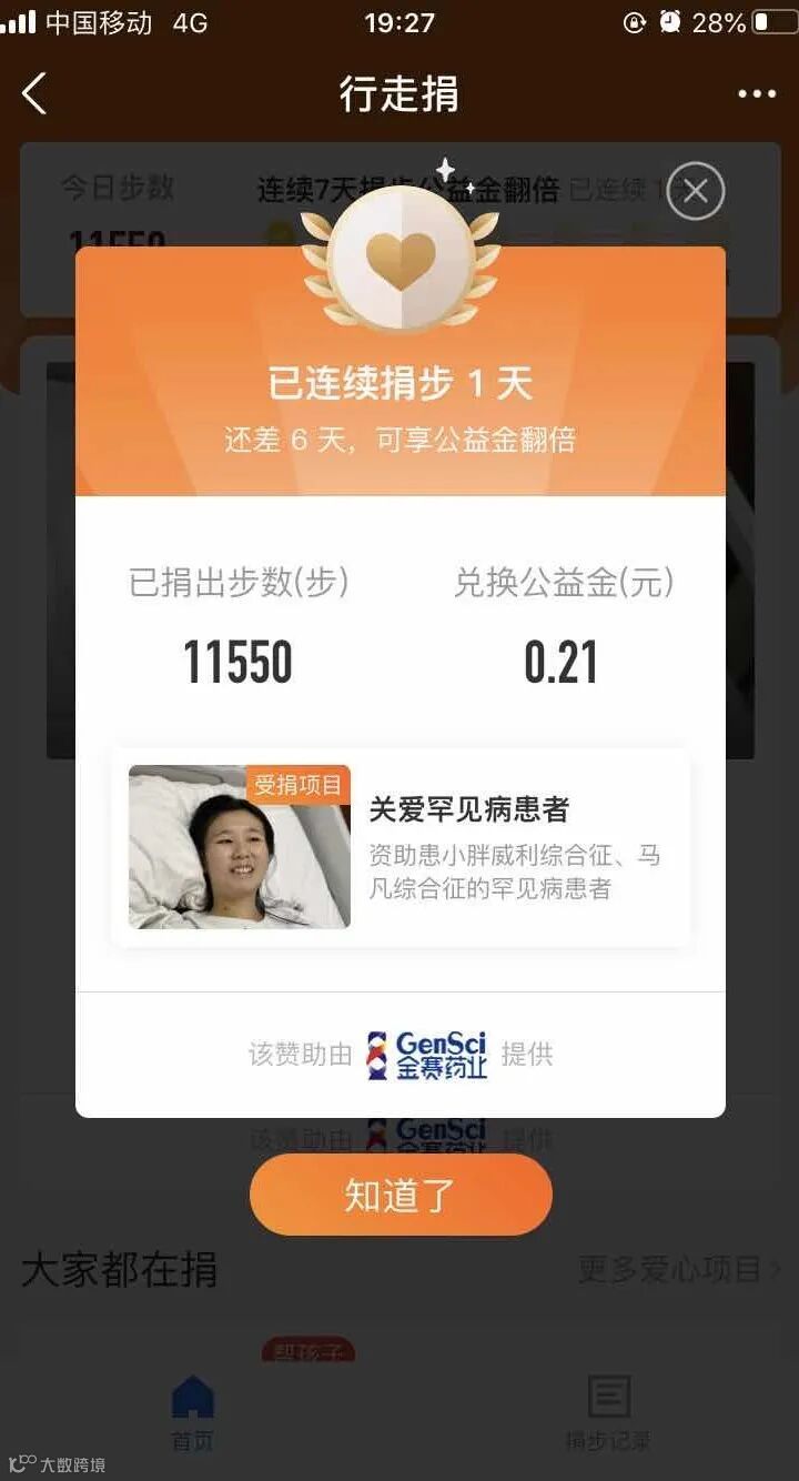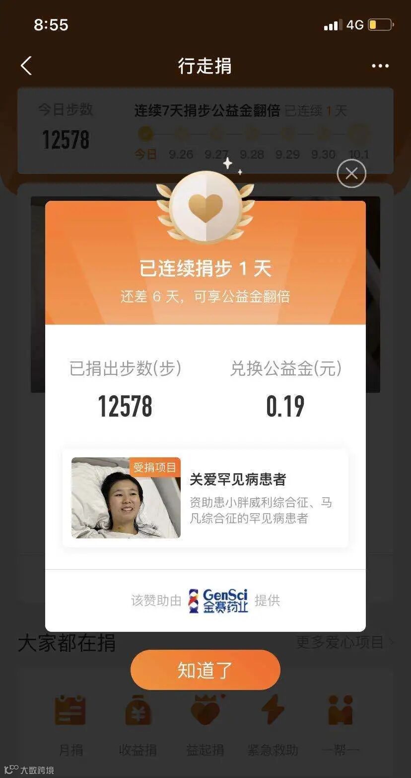 ▲部分步数捐赠截图