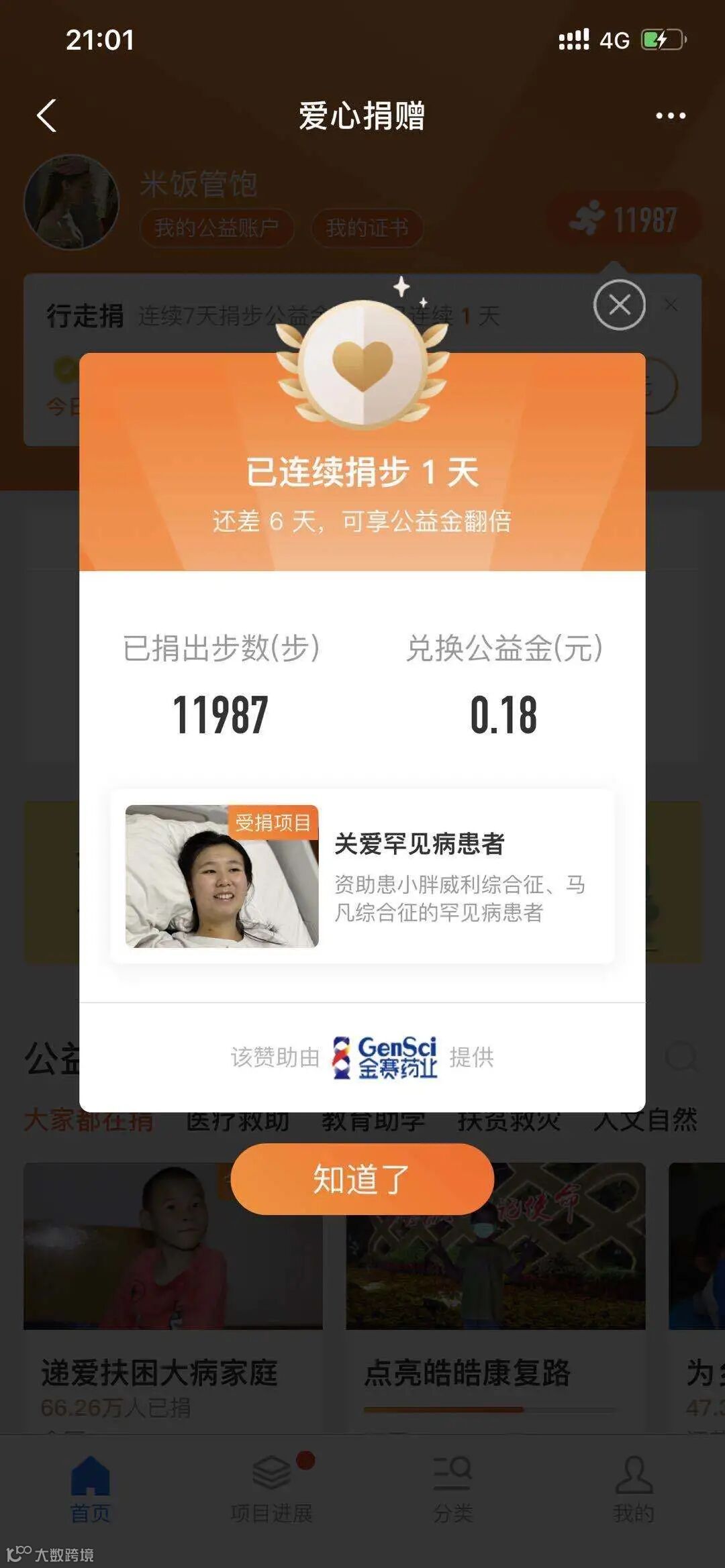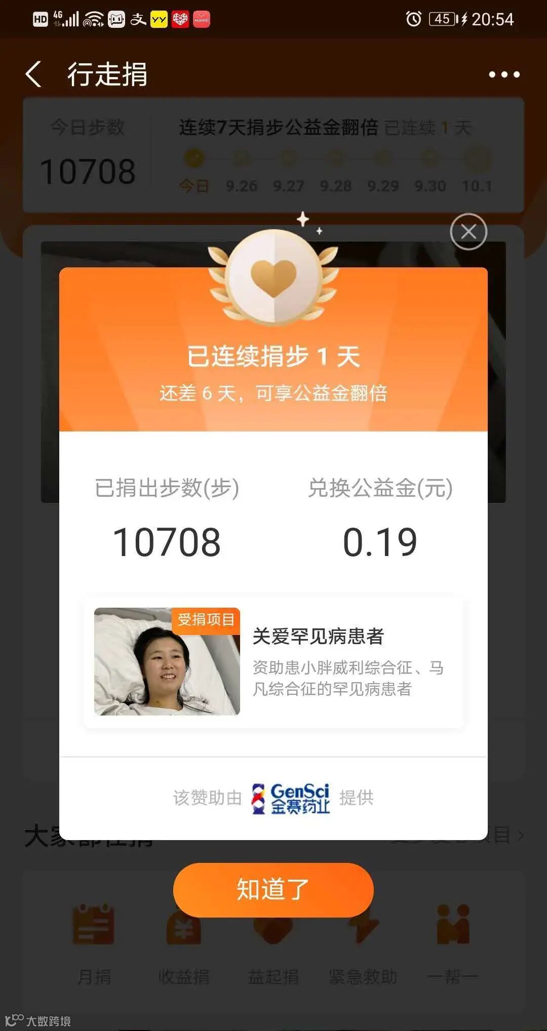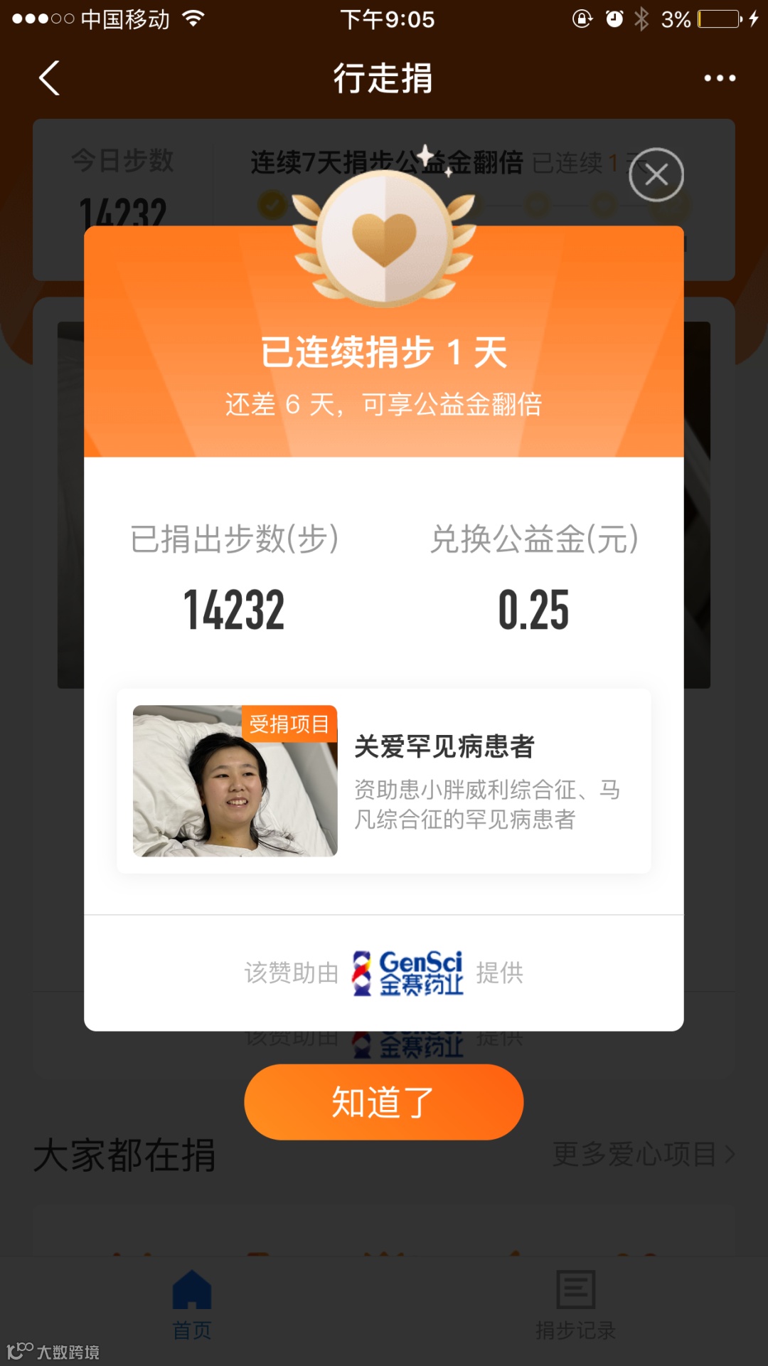 ▲部分步数捐赠截图