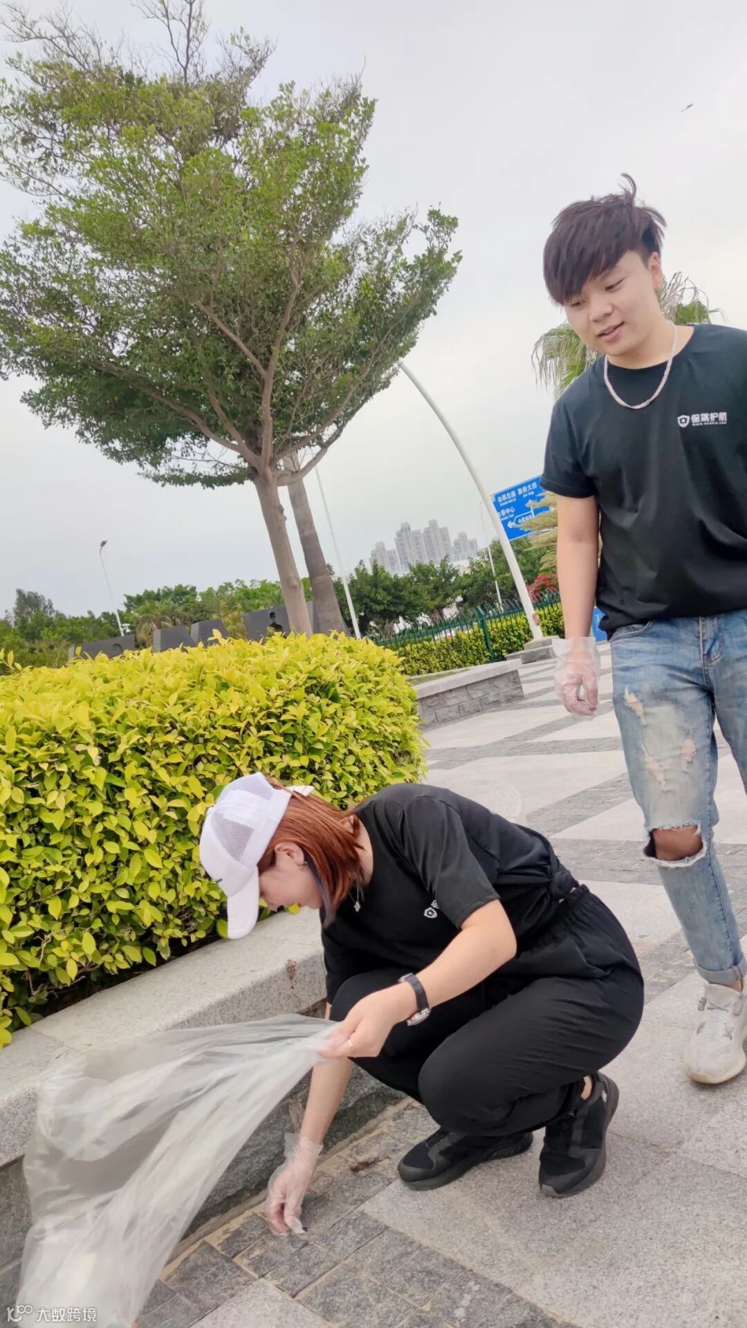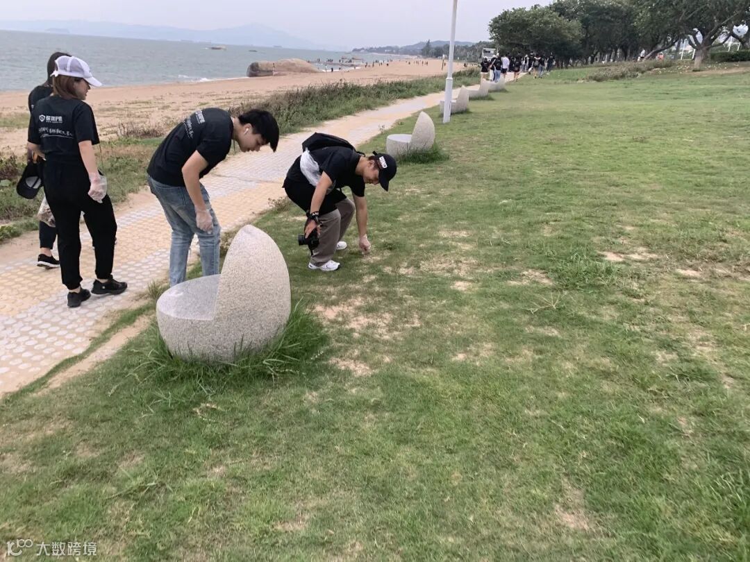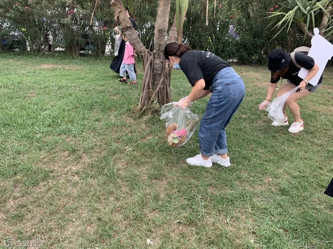 活动当天下午,身着保驾护航专属定制T恤的小伙伴们齐聚海滩领取捡垃圾装备,沿着各主要道路,深入草丛、边角地带,不放过每一处垃圾存在的地方。有的小伙伴还带了孩子出来体验公益活动,用行动来做最好的教育。