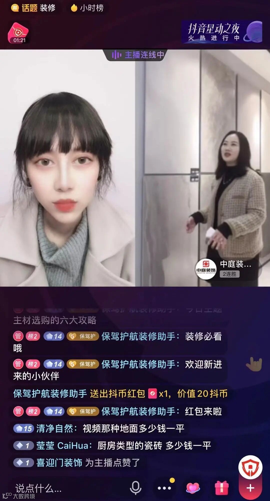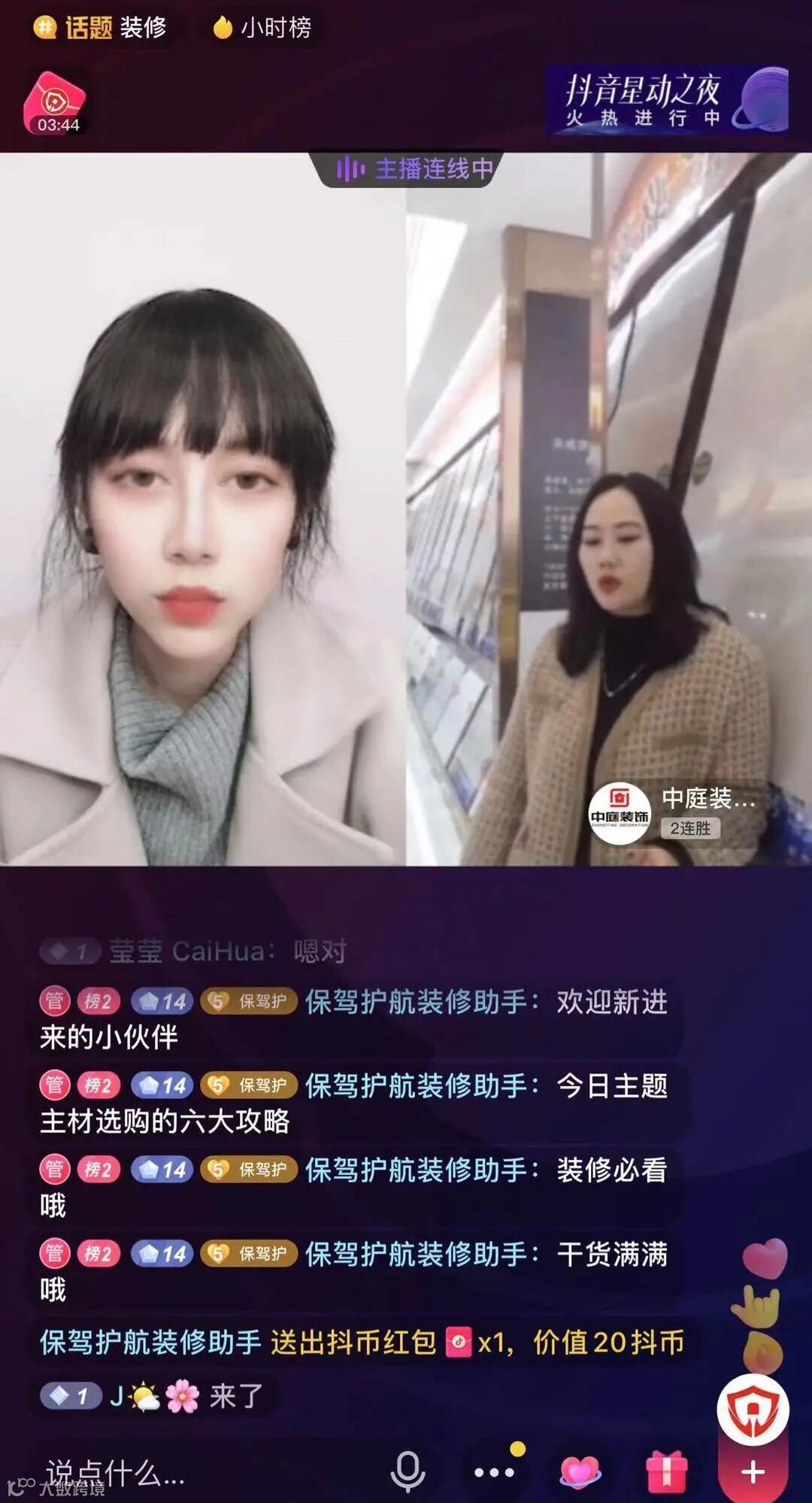作为国民APP,抖音日活跃用户已经达到4亿,无数企业纷纷入驻抖音,亟待从平台中分得一波流量。为了帮助合作装企探索全新营销模式,保驾护航积极联合全国各地的优质装企进行抖音连麦直播,实现线上引流。