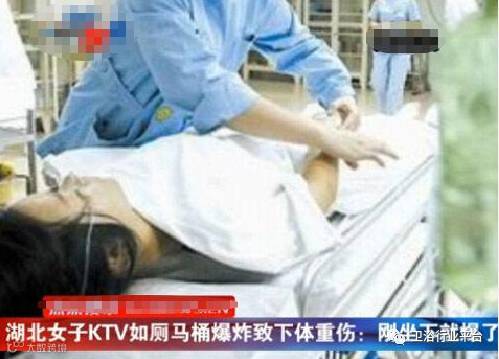 2015年12月3日晚,李女士到赤壁市一家KTV玩,当她上洗手间时,身体刚接触到马桶,马桶就炸了,导致其下体受伤、大量出血。随后她被连夜转到武汉市一家大医院治疗,做了3个小时手术,经重症监护室救治了48小时才脱离生命危险。