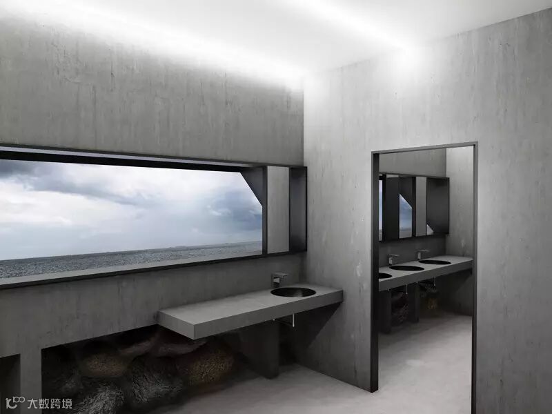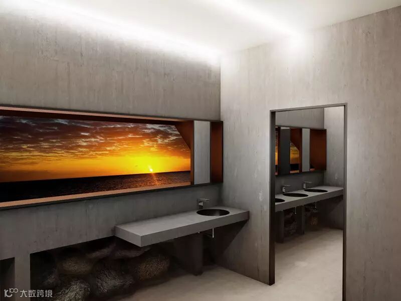 又在男厕与女厕中间设计了一块倾斜的岩石快