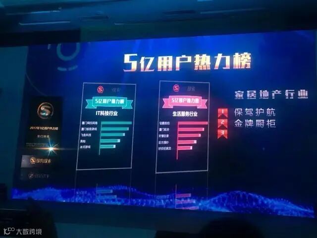 与此同时,本次会议还颁发了不同行业5亿用户热力榜,凭借强大的企业实力,保驾护航荣获家居地产行业5亿yogurt热力榜第一名。换言之,当装修用户在使用搜狗搜索引擎查找家装行业的信息时,就会看到保驾护航的信息,这就是品牌影响力。