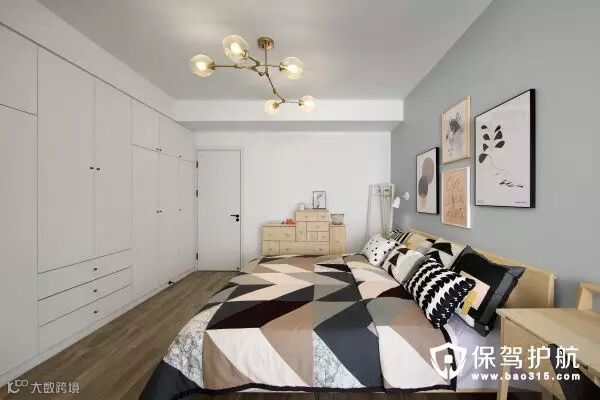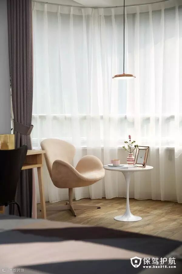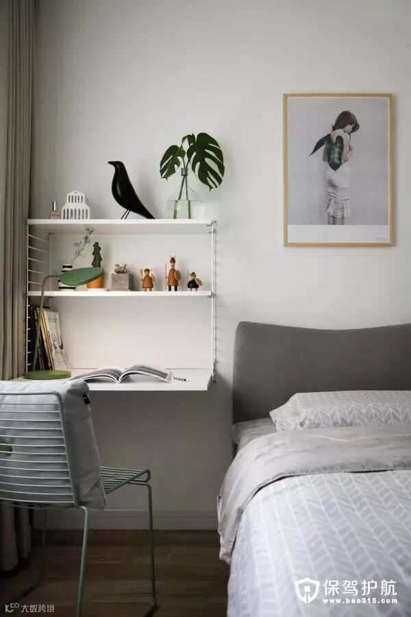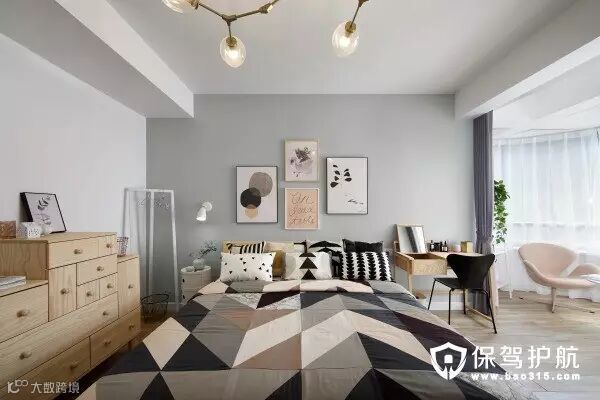 ▲床头卧室以浅灰色+原木色为主,搭配了粉色金色的饰品。全景镜头拍出来显得床宽3米,哈哈,实际上还是1米8x2米的床。