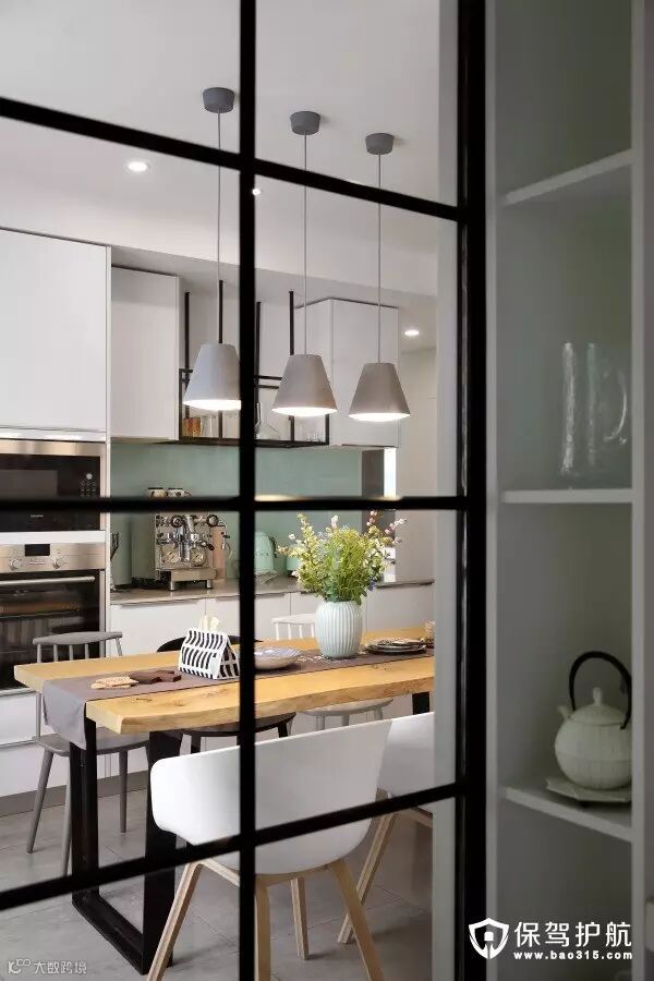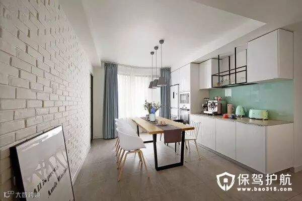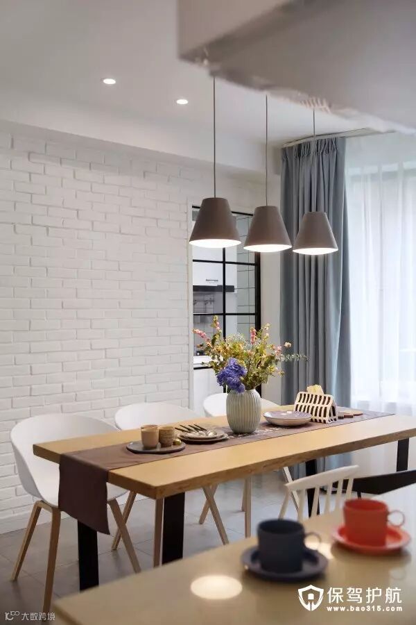 ▲餐厅很喜欢的一个角度~砌了一面白色文化砖墙,用白色勾缝剂勾缝,表面涂刷白色乳胶漆,方便日后打理。餐椅和吊灯很好地中和了铁艺桌腿的工业感,灯光打开的时候很温馨,特别想回家吃饭。餐桌是家里买的最早的一件家具,等了2个多月才抢到这张,到手果然没有失望,纹理很美,特别有质感,而且表面光滑容易打理,不易渗油污。