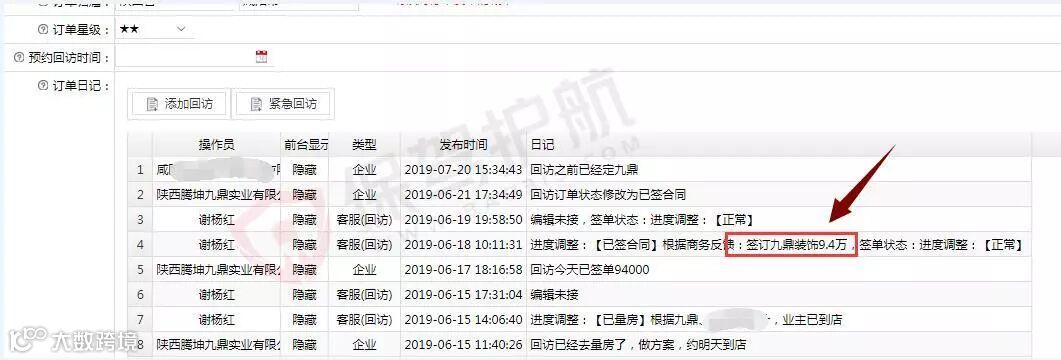 ▲回访记录