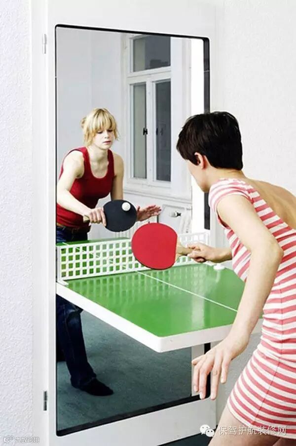 首先来看一个创意的家居门设计,这是一个可以打乒乓球的门,往上翻转,便是一道牢牢的门,翻转90°下来变成了一个乒乓球桌。你可以邀约几个朋友一起到家中打乒乓球。这个设计够创新吧,这是这个门开关会麻烦吗?