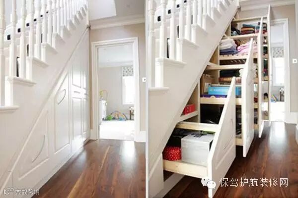 这个楼梯收纳设计倒是比较常见,不过这个楼梯收纳设计也有别于普通的楼梯收纳设计哦,设计师把整个楼梯间都分割成收纳空间。