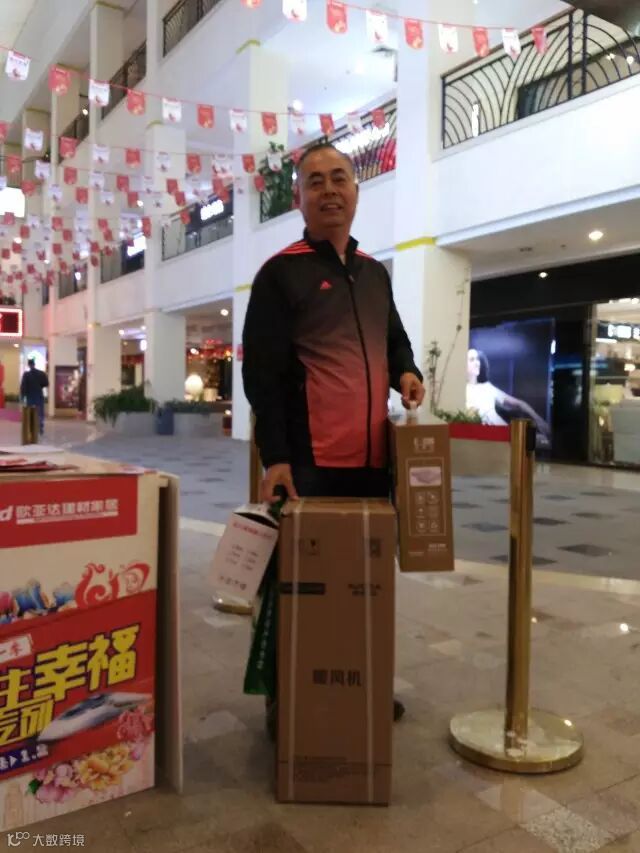 (图为抽中了电暖器和记忆枕的顾客)