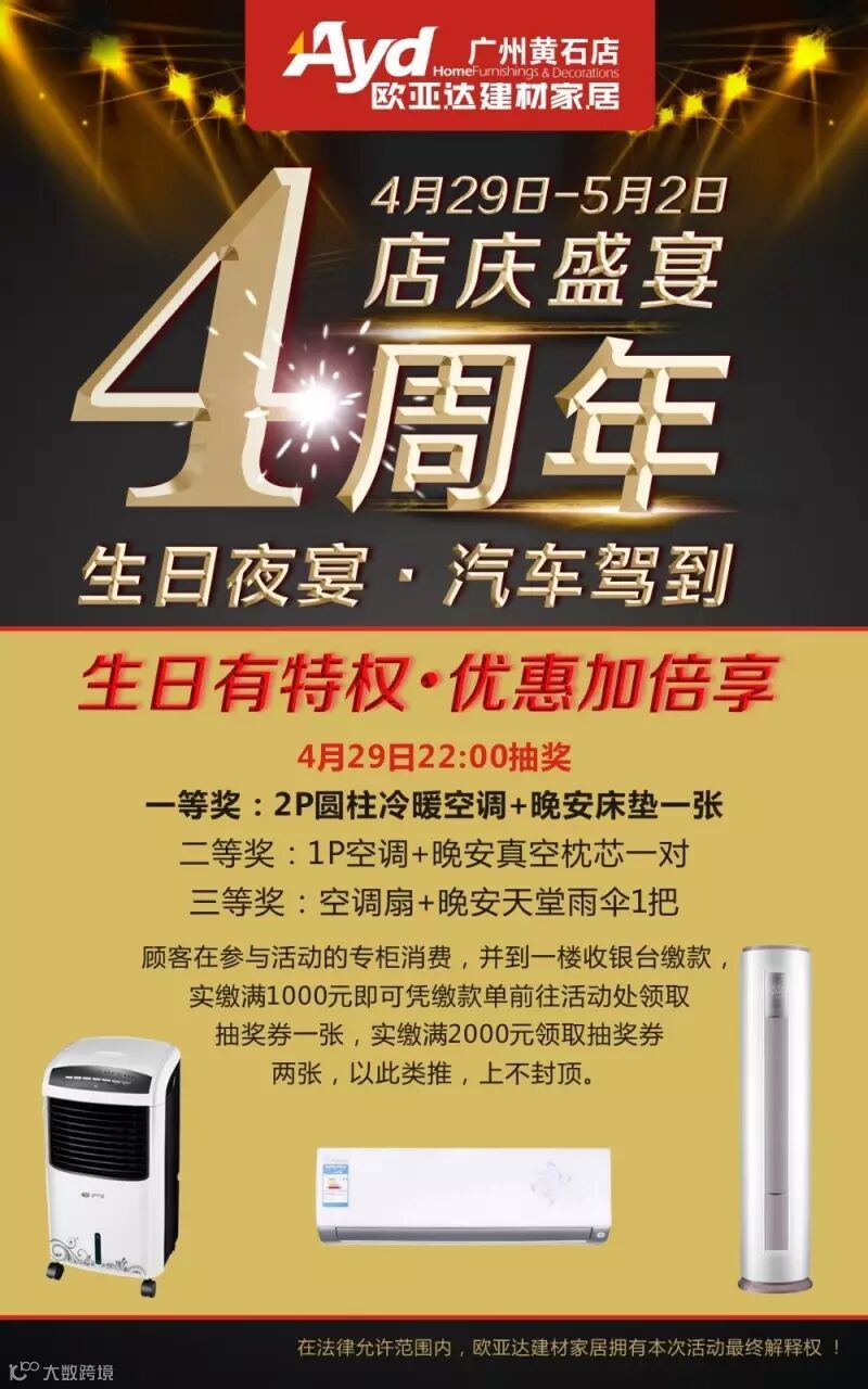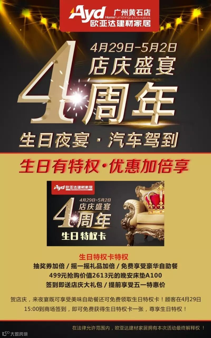 各种加倍优惠,店庆大礼包,建材家居全场生日价。