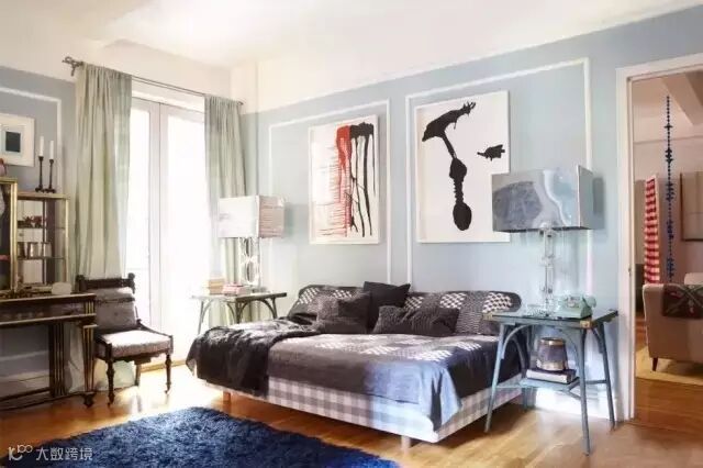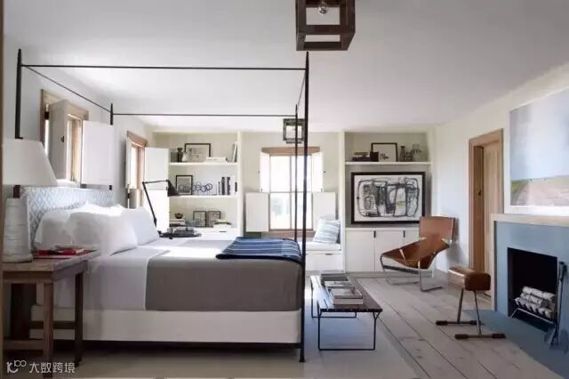把书架装在卧室里,书架上不仅有书,还有雕像、艺术画、设置常用的香水,把全部聪明才智与审美都在卧室展现。