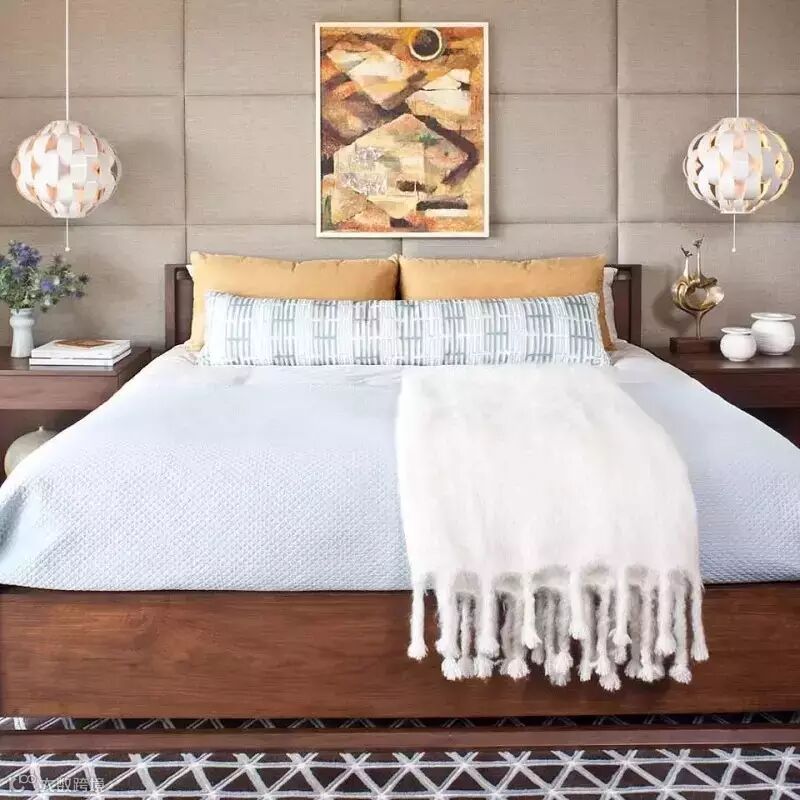 四壁空空的卧室,被这幅极具冲击力的映画点燃,让卧室瞬间充满戏剧性。