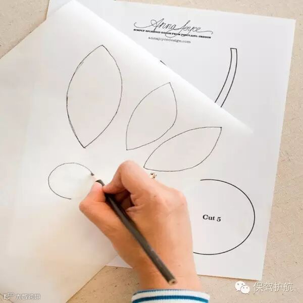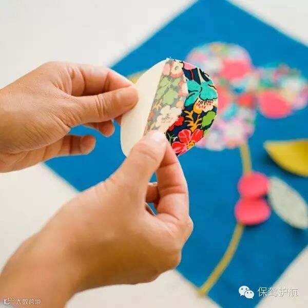 将碎花布熨烫好,把设计好的图案剪下来然后对着碎花布刻一样的模子。