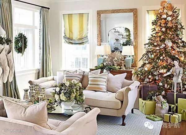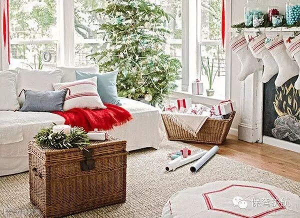 圣诞节是个寒冷的季节,在白色装饰上,除了给圣诞树盘绕上一些银白色的彩带和白色的雪花片外,你还可以在自己家摆放圣诞树的位置,例如客厅沙发周围摆放上灰白色或者白色的毛毯,一个可以起到保暖的作用,另一个是可以营造节日的浪漫氛围。