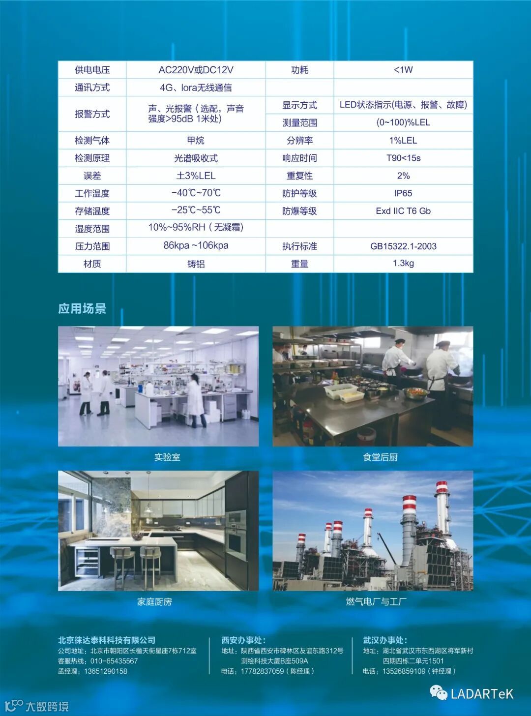 1.采用激光光谱吸收式可燃气体检测模块,与传统催化剂式检测器相比,具有精度高、无零点漂移、寿命长(可达10年)等特点。