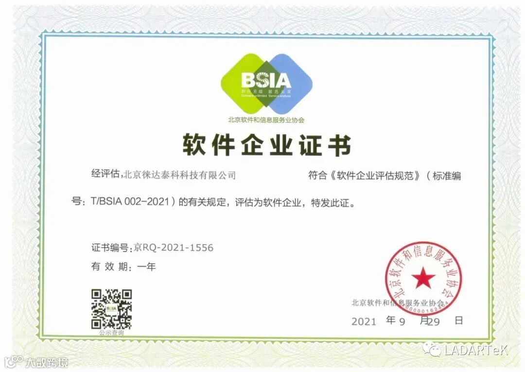 北京徕达泰科科技有限公司近日完成软件产品评估和软件企业评估的双认证。
