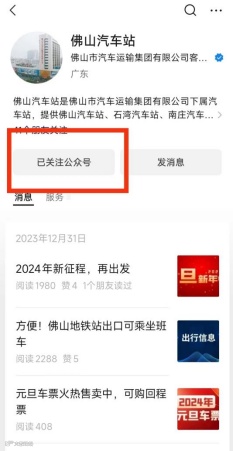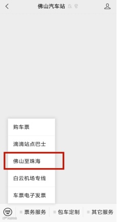 二、关注佛山汽车站公众号,进入票务服务→选择佛山至珠海
