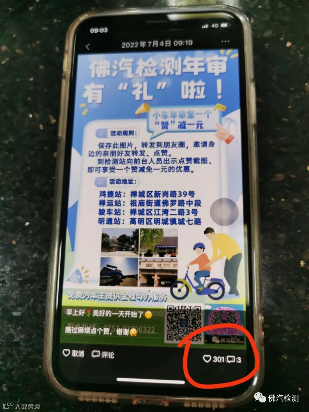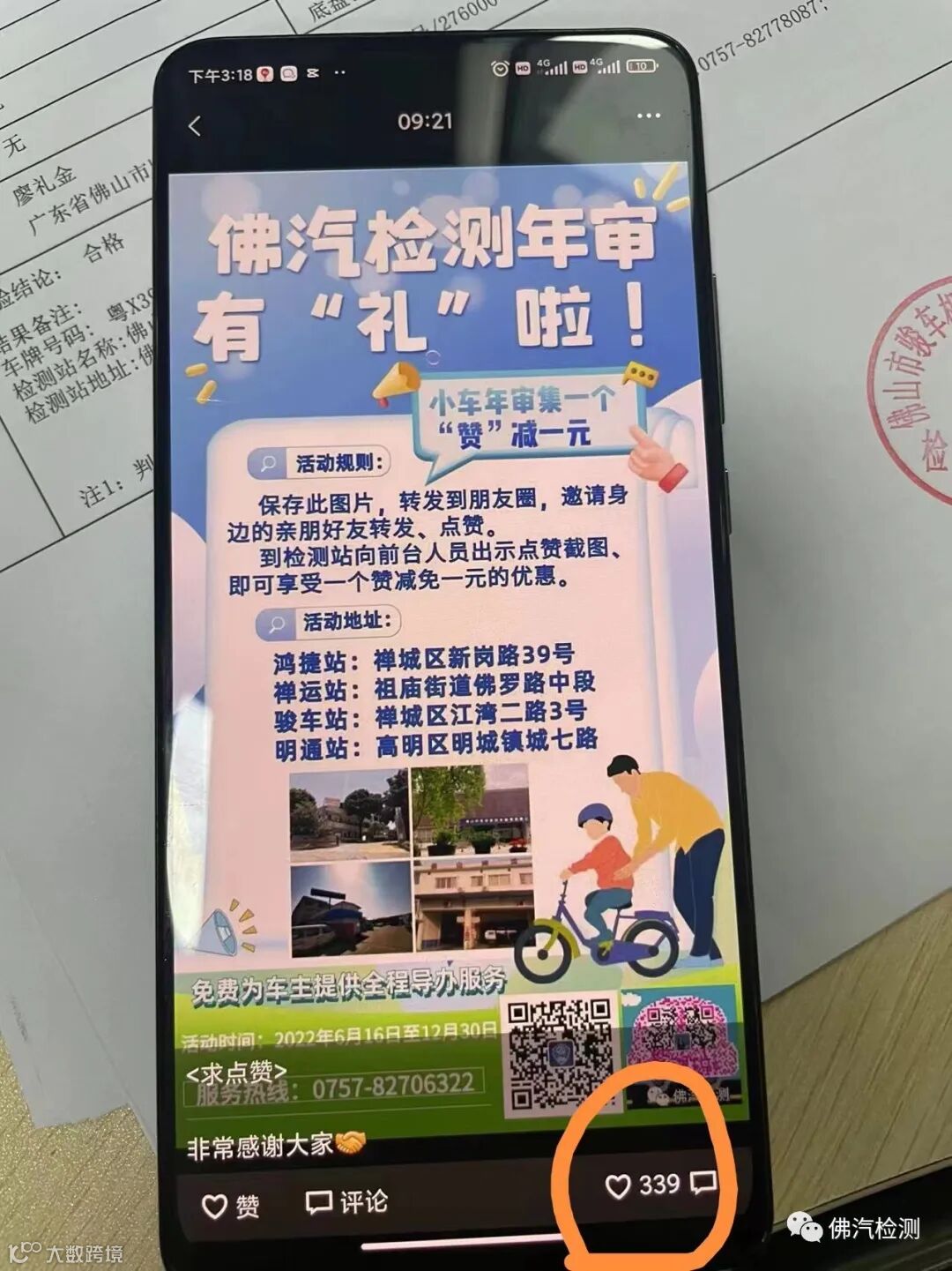 2022年7月1日上午,一位帅哥梁先生驾爱车到骏车检测站年审,在前台靓女姐姐的指引下,转发活动海报到朋友圈点赞,花了不够1个钟的时间,就集了339个赞,这次梁先生的爱车年审,一分钱不用花,全免费!梁先生出乎意料地说,“这是我第一次审车不用花钱!你司的集赞活动是实实在在给客户的优惠!”339个赞,真是山外有山,人外有人啊!