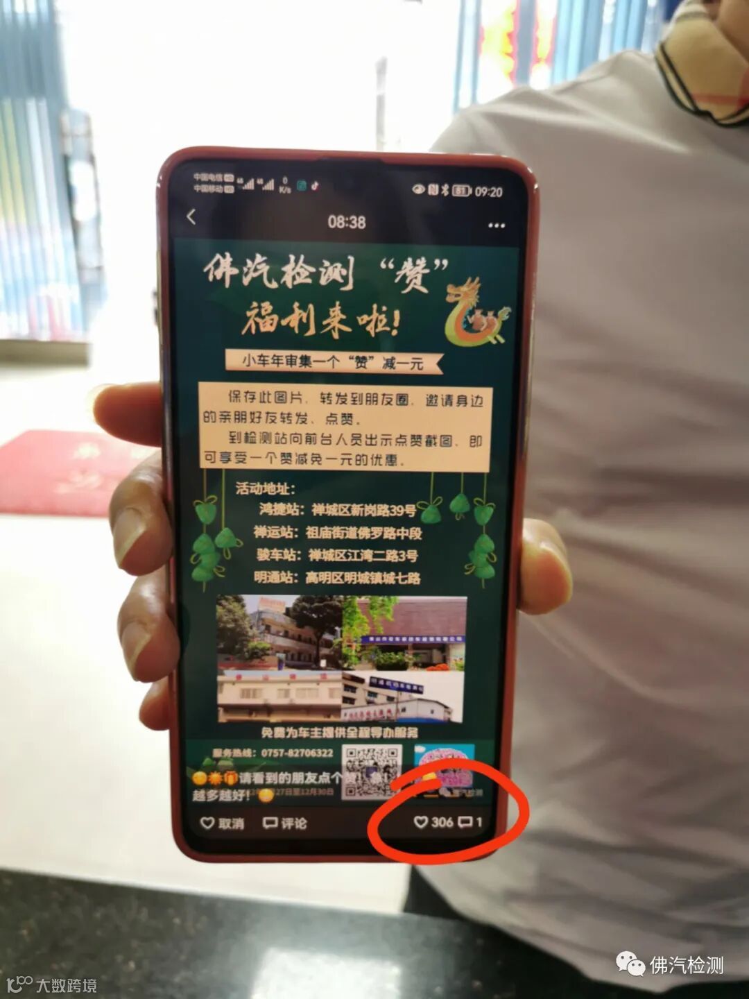2022年6月16日上午,一位私人诊所的医生董先生驾爱车到鸿捷检测站年审,在前台靓女姐姐的指引下,转发活动海报到朋友圈点赞,花了1小时左右的时间,就集了306个赞,306个赞,真牛啊!这次董先生的爱车年审,一分钱不用花,全免费!董先生兴奋地说,“这是我第一次享受免费年审的待遇呀!你司的集赞活动的确很实惠,我的朋友圈里头有3000多人,其实集300个赞是很容易的事情啊!”