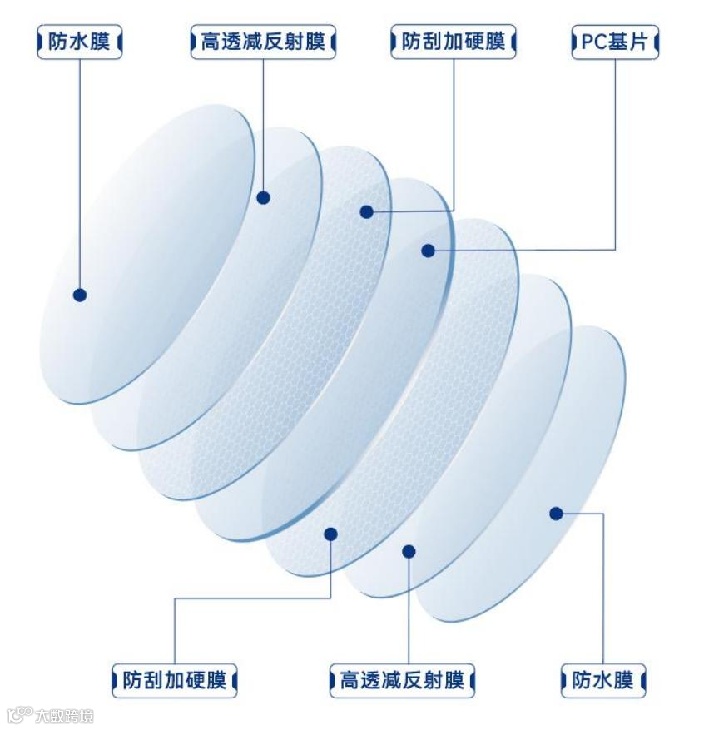 防水膜: 增加镜片表面光滑度, 有效 预防刮伤